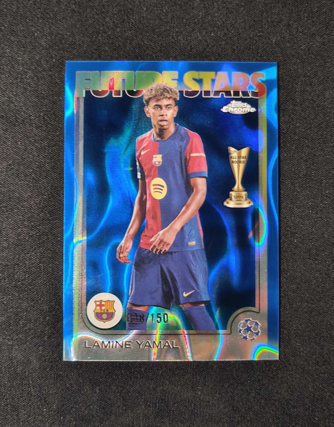 2025 Topps Chrome Lamine Yamal 拉明 亚马尔 巴萨 巴塞罗那 西班牙 038/150编 蓝熔岩折 折射 未来之星 收藏必备 G91