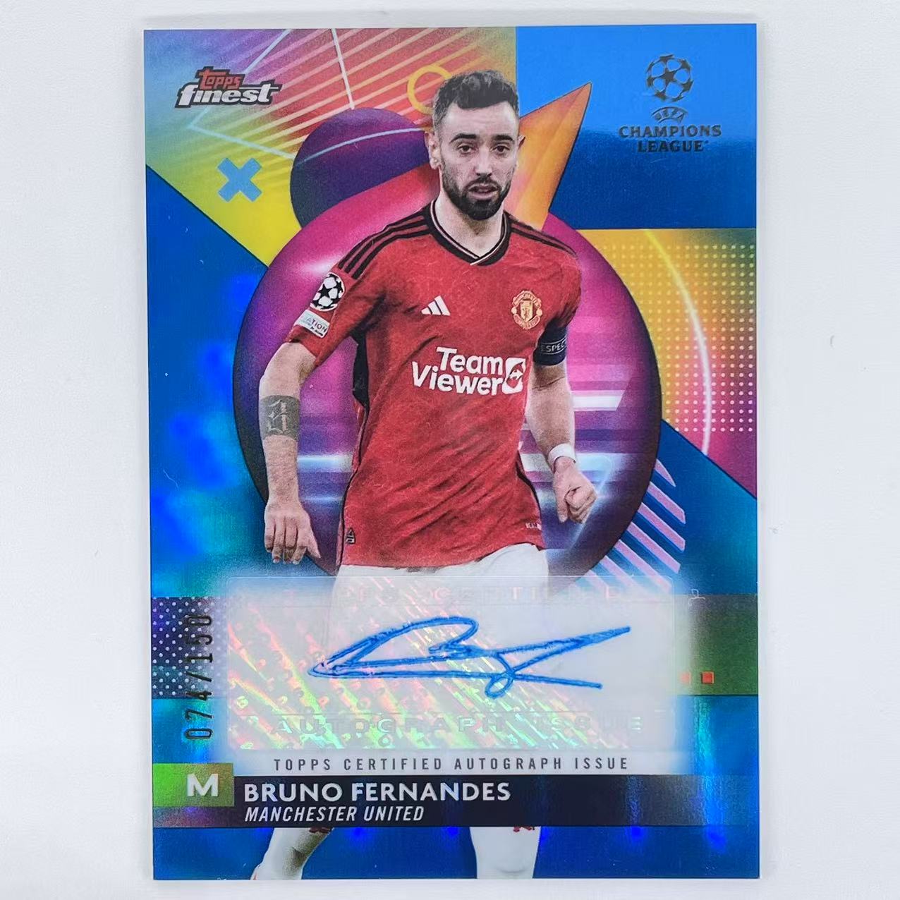 J 2023-24 Topps Finest Bruno Fernandes 布鲁诺 费尔南德斯 B费 葡萄牙 曼联 欧冠 150编 签字 签名 蓝折 折射 轻印如图 Yve#