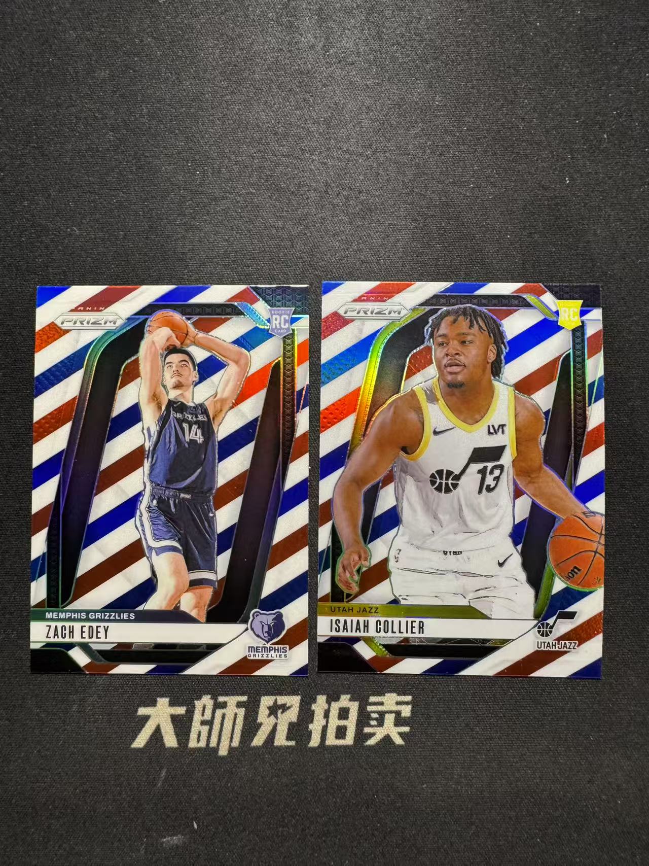 【大师兄拍卖】2024-25 Panini Prizm 灰熊 扎克埃迪 周志豪 爵士 科勒尔 新秀RC 三色折 2张 PZ 如图-小今-点