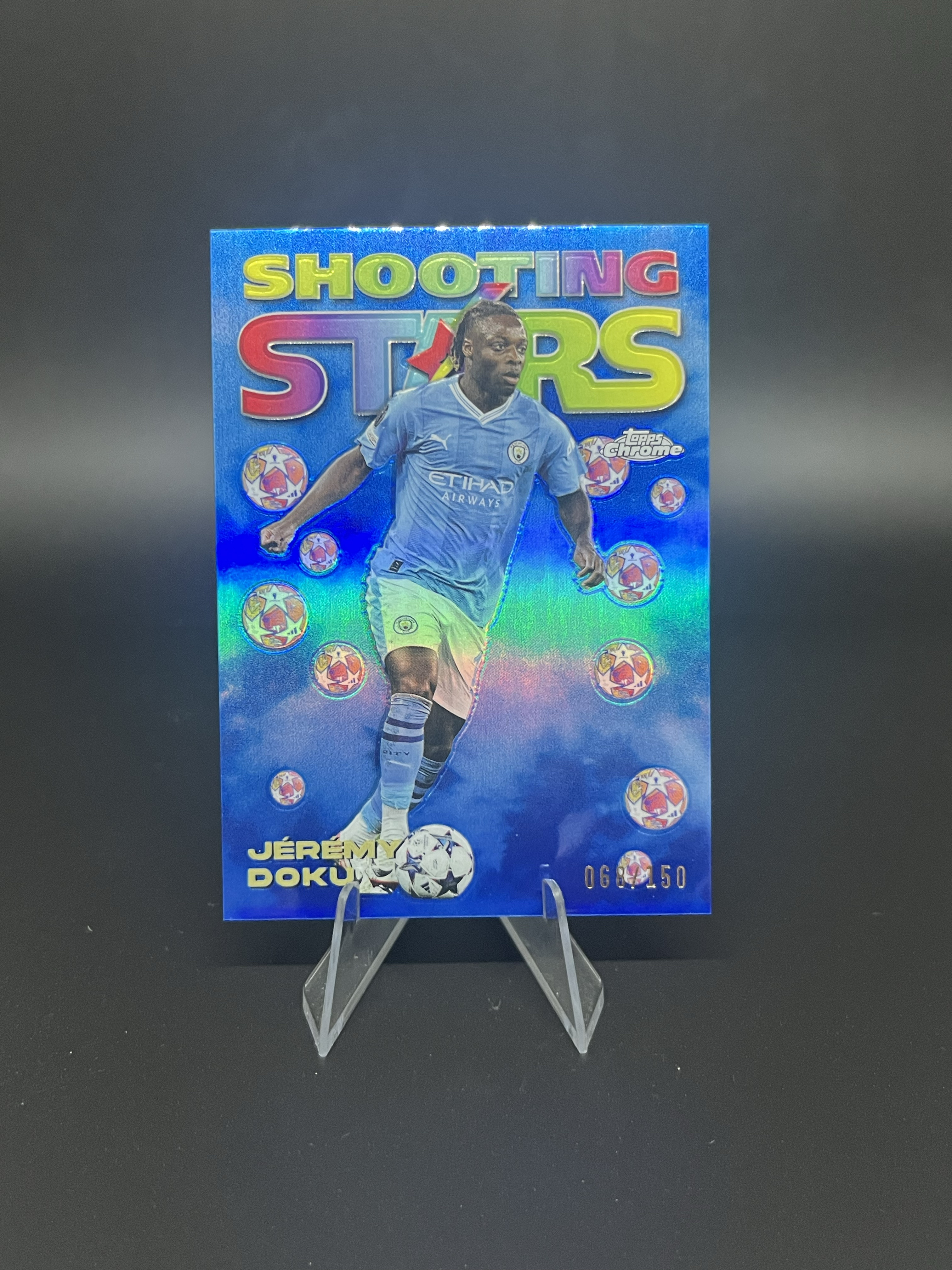 【蓉城拍卖】2024 Topps Chrome Jérémy Doku 欧冠 欧联 曼彻斯特城队 曼城 多库 SHOOTING STARS 特卡 066/150编 蓝折 火腿
