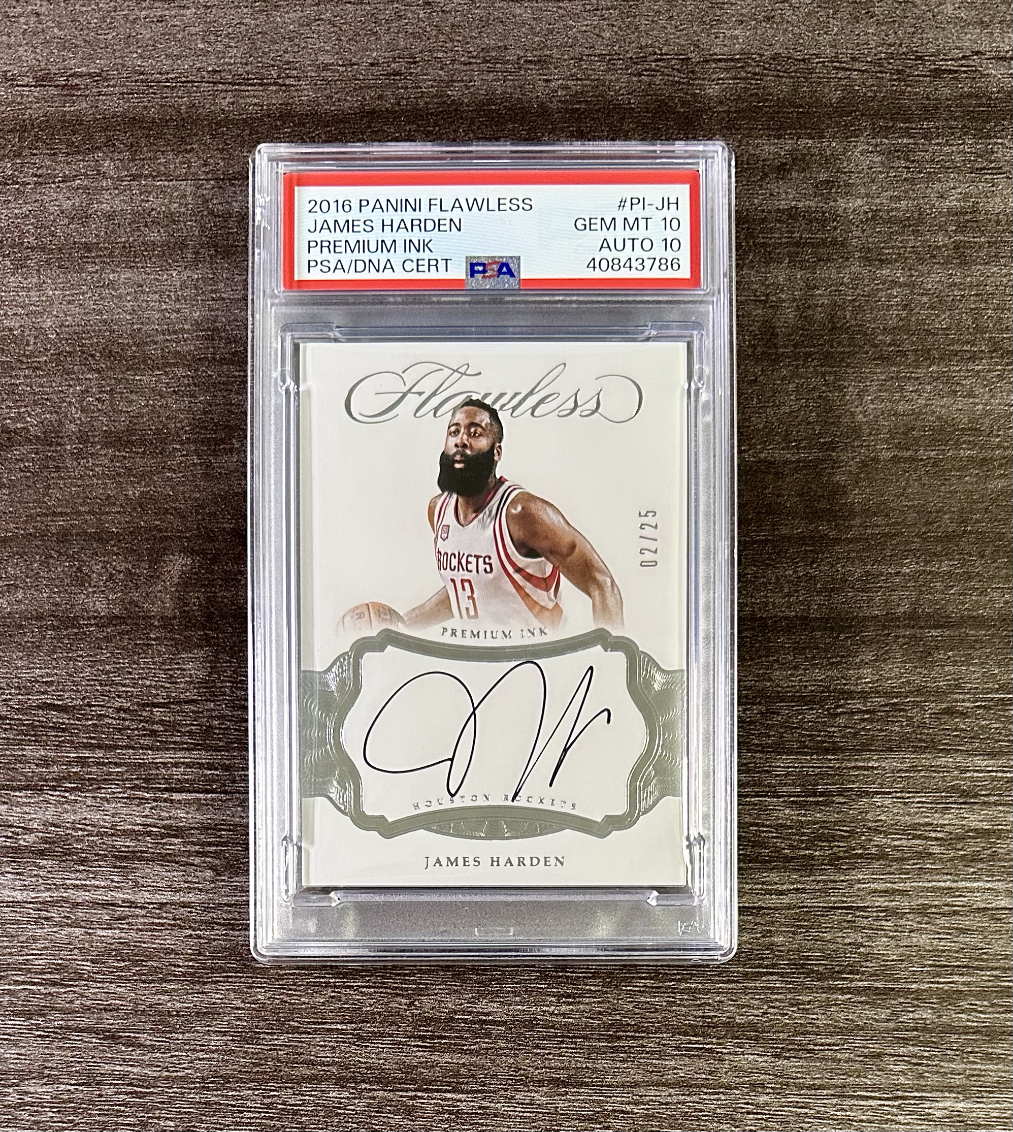 【1024拍卖】2016-17 Flawless Premium Ink 手提 签字 黑笔卡签 02/25编 James Harden 詹姆斯哈登 大胡子 火箭 PSA10签字10 墨迹好 DQ6