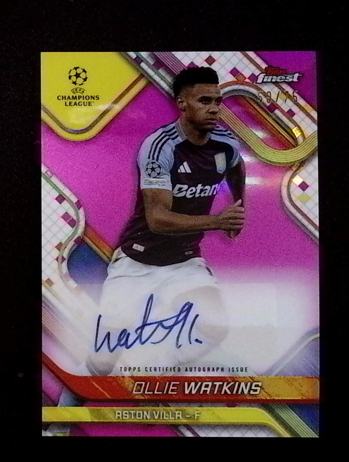 2025 Topps Finest Ollie Watkins 欧冠 Finest 阿斯顿维拉 奥利 沃特金斯 粉折 50/75编 签字 墨迹如图 收藏必备 卡品如图(铁哥)