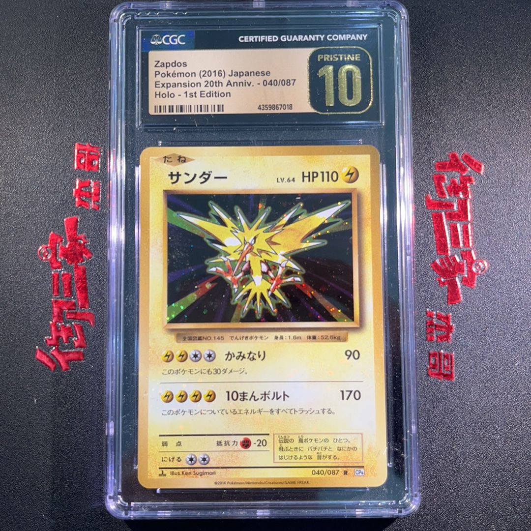 2016 Pokemon TCG CP6 PTCG 宝可梦 日版 连号第七张 闪电鸟 holo 闪卡 一刷 040/087 CGC 金10 卡品如图 ja 【御三家杰哥】901s
