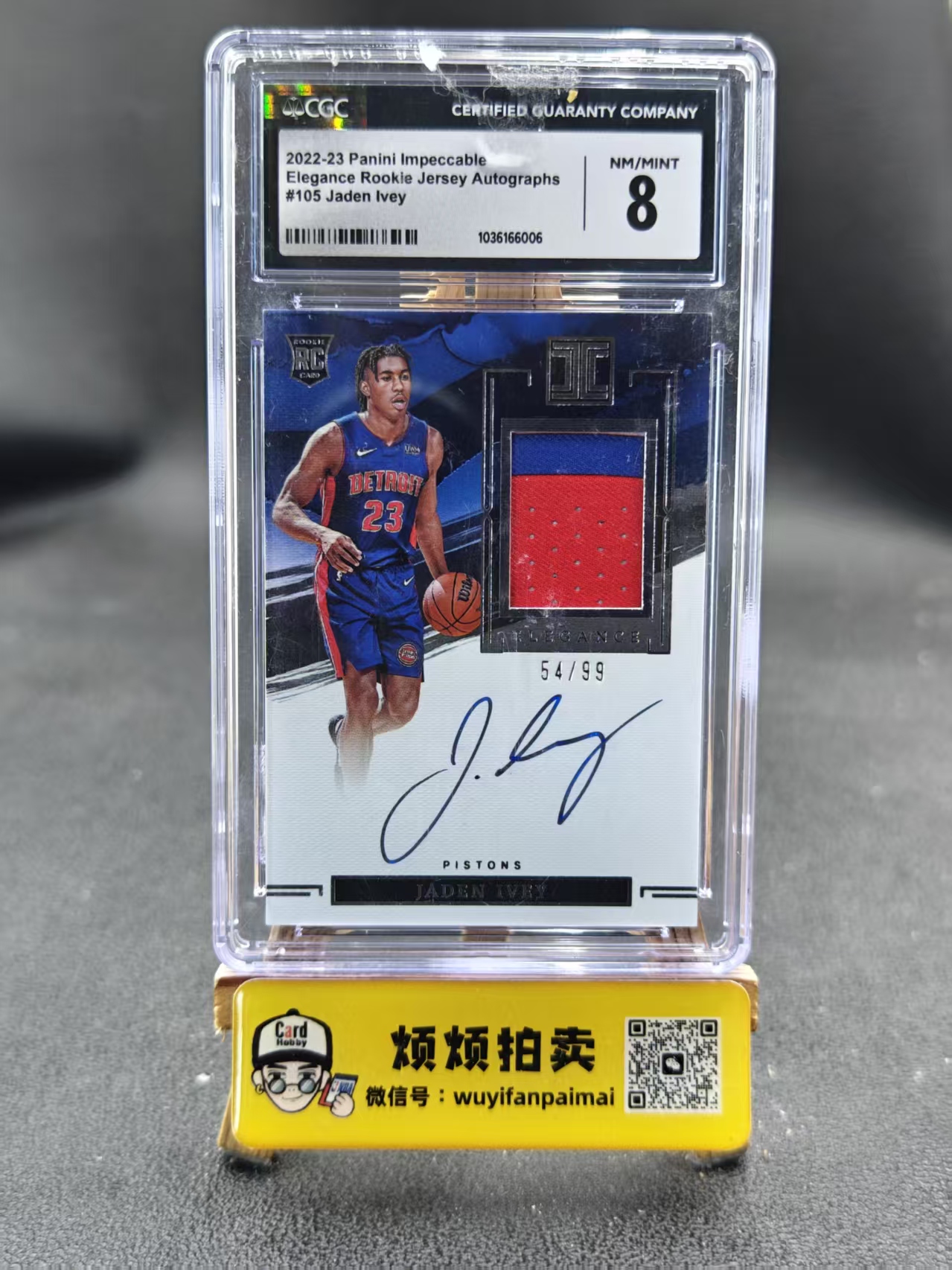 2022-23 Panini Impeccable Jaden Ivey 【烦烦拍卖】小真金 活塞 杰登艾维 新秀RC 球衣物料 RPA 签字卡签 54/99编 CGC8+10分【APP总】E7