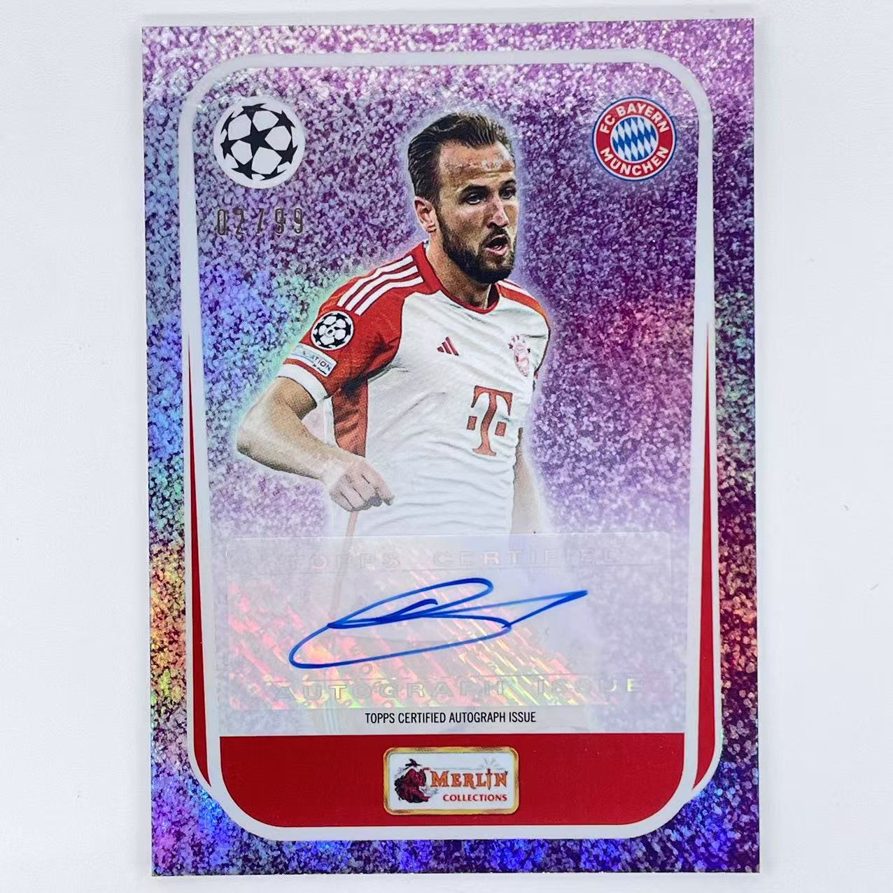 D 2023 Topps Merlin Heritage Harry Kane 哈里 凯恩 99编 紫碎点折 折射 签字 签名 热刺 拜仁慕尼黑 英格兰 梅林 遗产 欧战 轻印如图 众孚孤独#