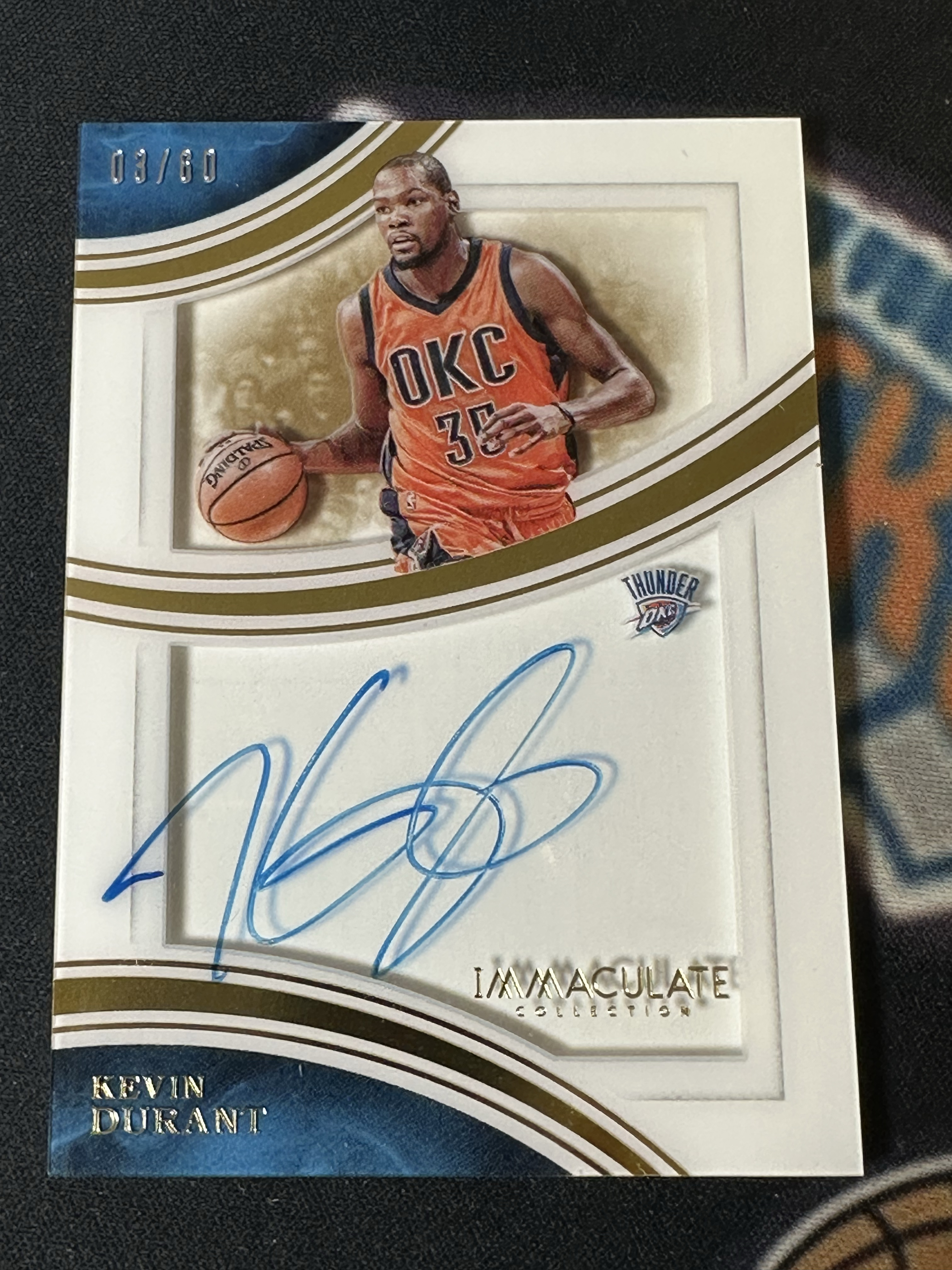【预付85%卡迷联盟-联众】2015-16 Panini Immaculate Kevin Durant 沙盒 签字 卡签 雷霆 小帅 死神 凯文 杜兰特 角如图 03/60