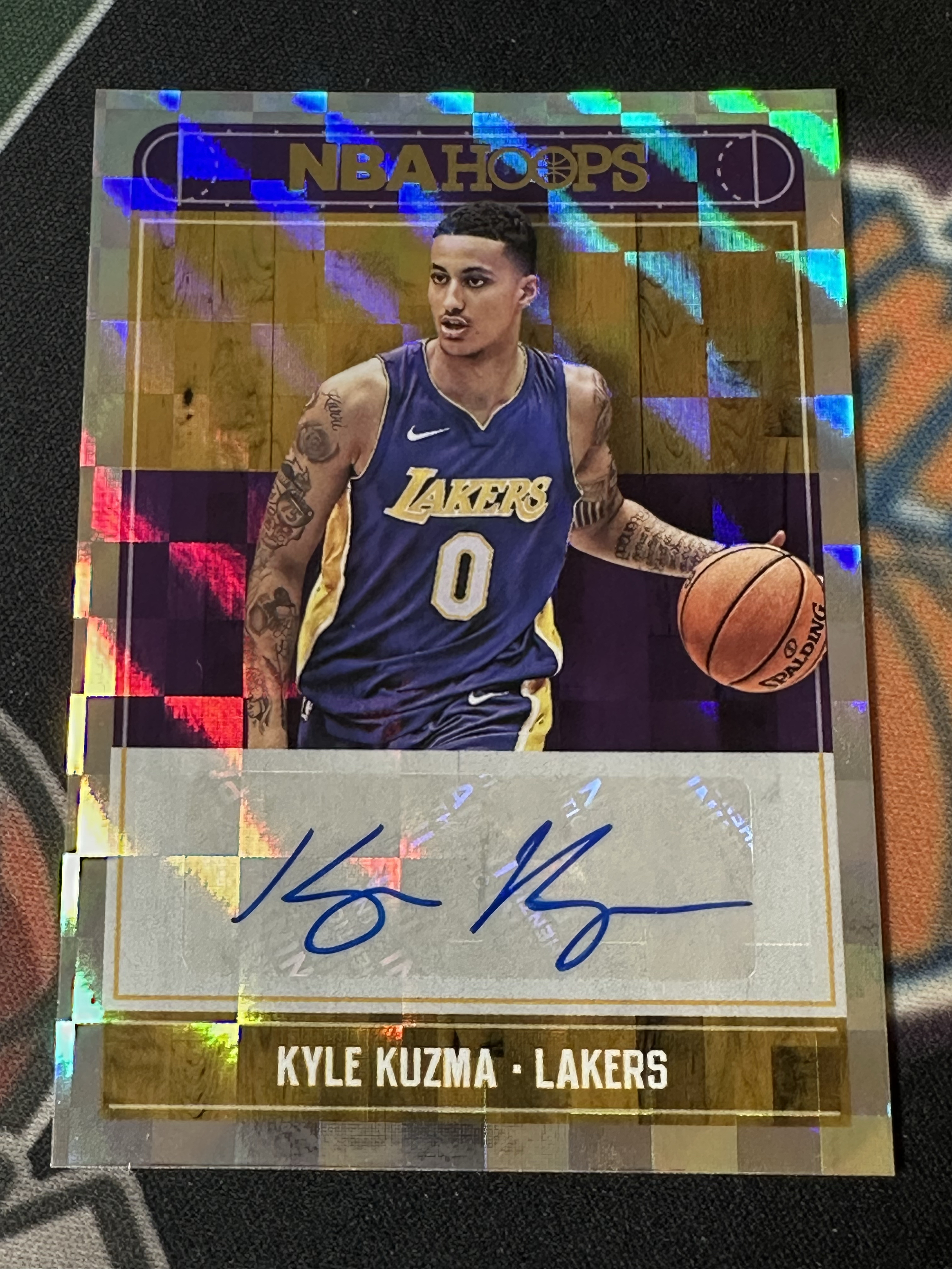 【预付85%卡迷联盟-联众】2017-18 Panini Hoops Kyle Kuzma RC 格子折 签字 湖人 新秀 又帅又能打 老子库兹马