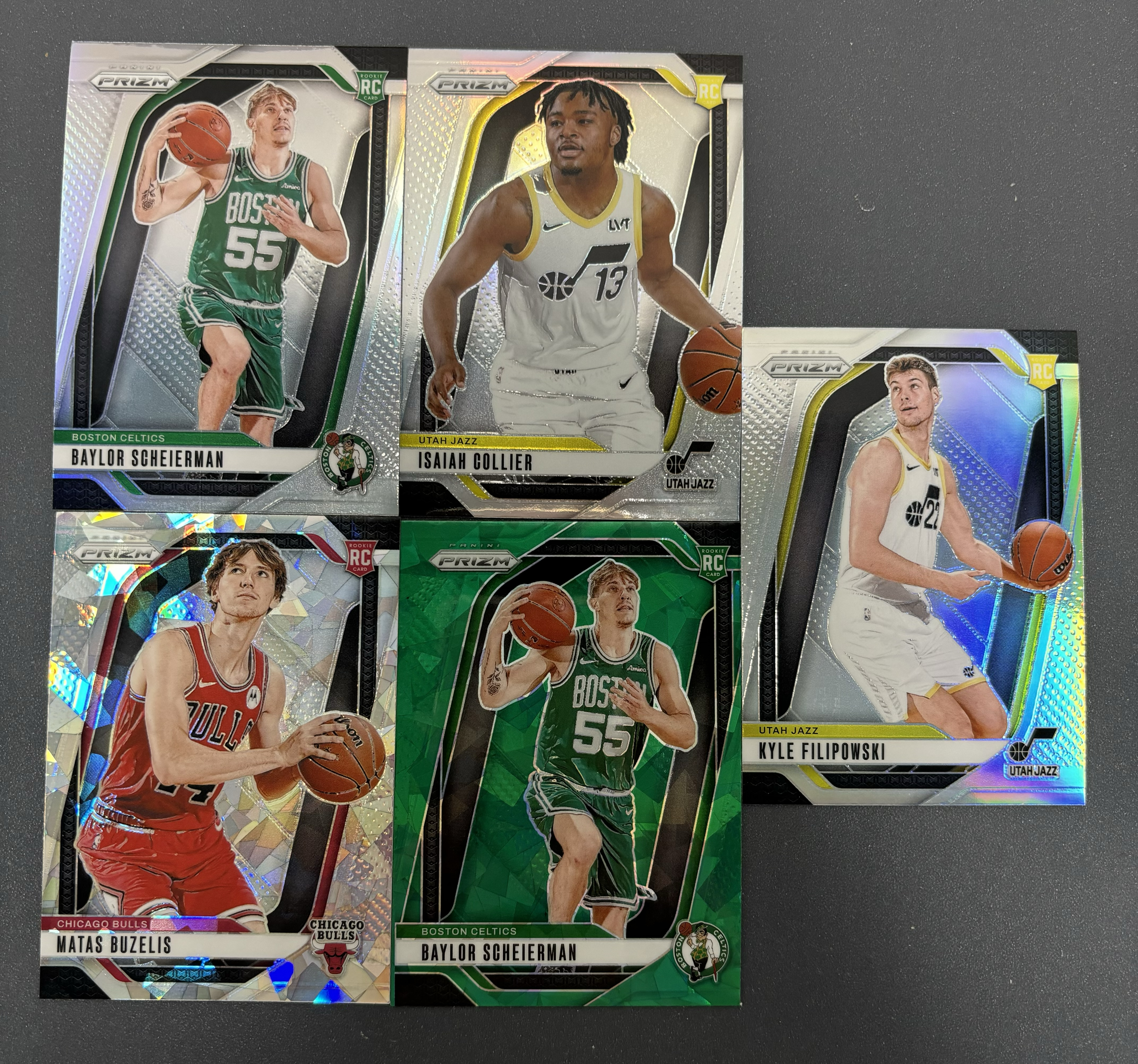 2024-25 Panini Prizm Baylor Scheierman RC Prizm 贝勒 沙伊尔曼 马塔斯 布泽利斯等 新秀 银折 绿碎冰折 碎冰折 lot共5张 lot不保卡品(南汤)