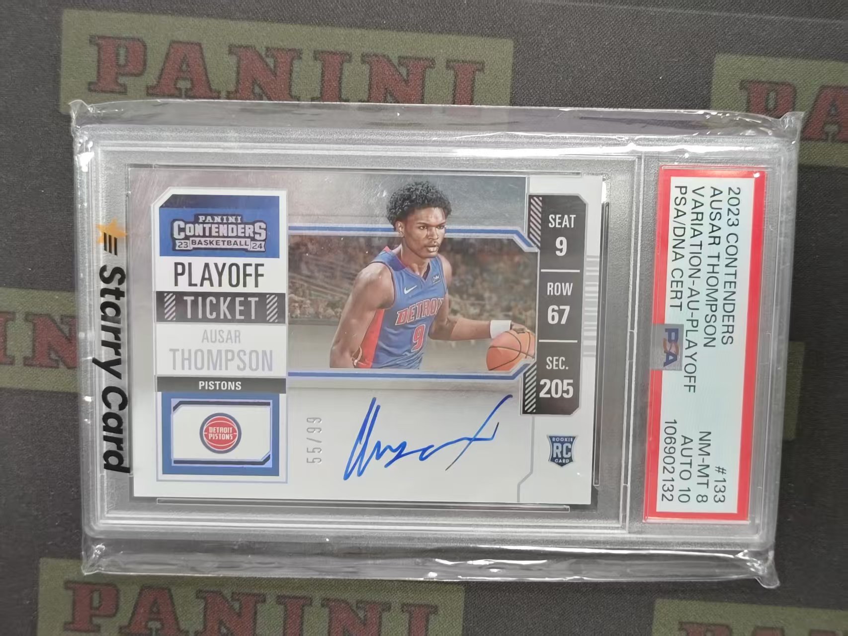 2023-24 Panini Contenders Ausar Thompson 球票 活塞 新秀 rc 奥萨尔 汤普森 签字 卡签 99编 闪版 评级 PSA 8分 签字10分 nndd