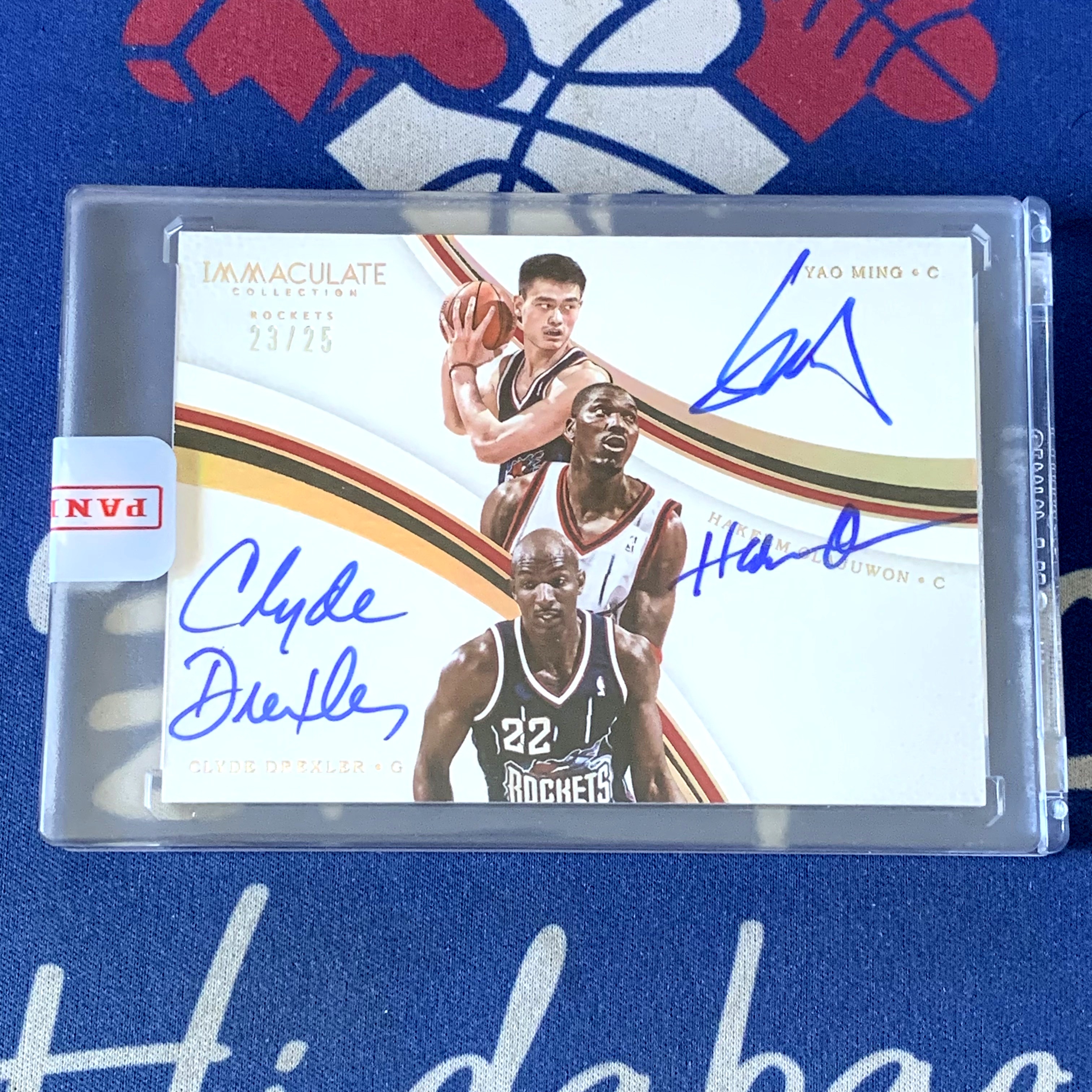 2016-17 Panini Immaculate Houston Rockets 【海宝】火箭 姚明 大梦奥拉朱旺 滑翔机德雷克斯勒 25编 三人签字卡 三签 卡签 原封砖 凑套 收藏必备【SZH】
