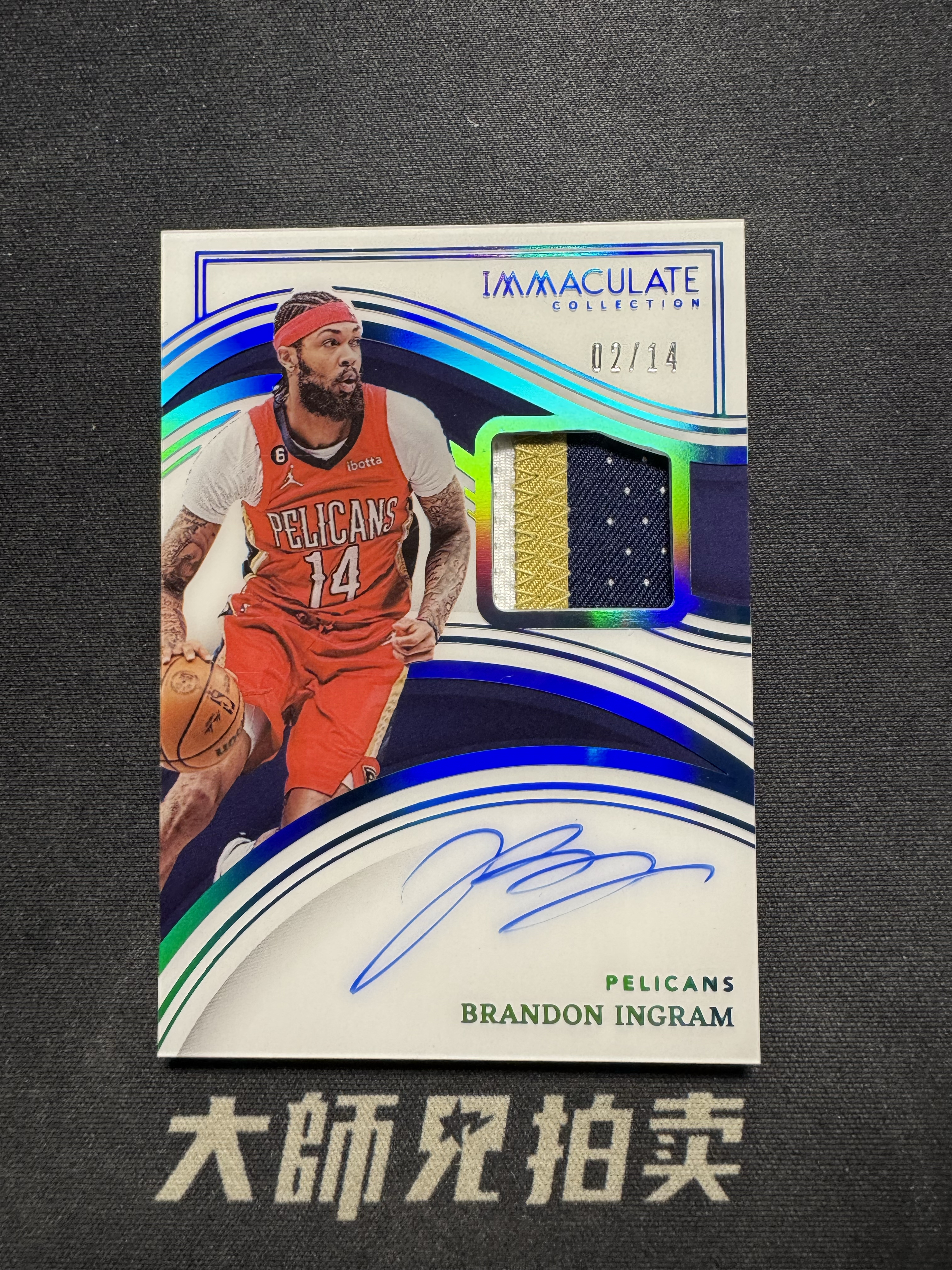 【大师兄拍卖】2022-23 Panini immaculate BRANDON INGRAM 鹈鹕 布兰登 英格拉姆 imm 14编 背号编 签字 物料 亲穿球衣 patch 细节看图-7ack-