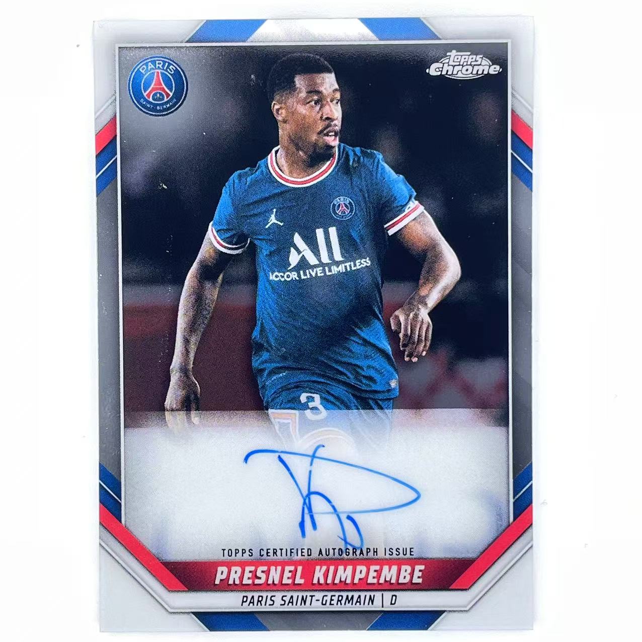 E 2021-22 Topps Chrome Paris Saint-Germain Presnel Kimpembe 普雷内尔 金彭贝 99编 签字 签名 卡签 法国 大巴黎队盒 高端TC 轻印如图 众孚psg#