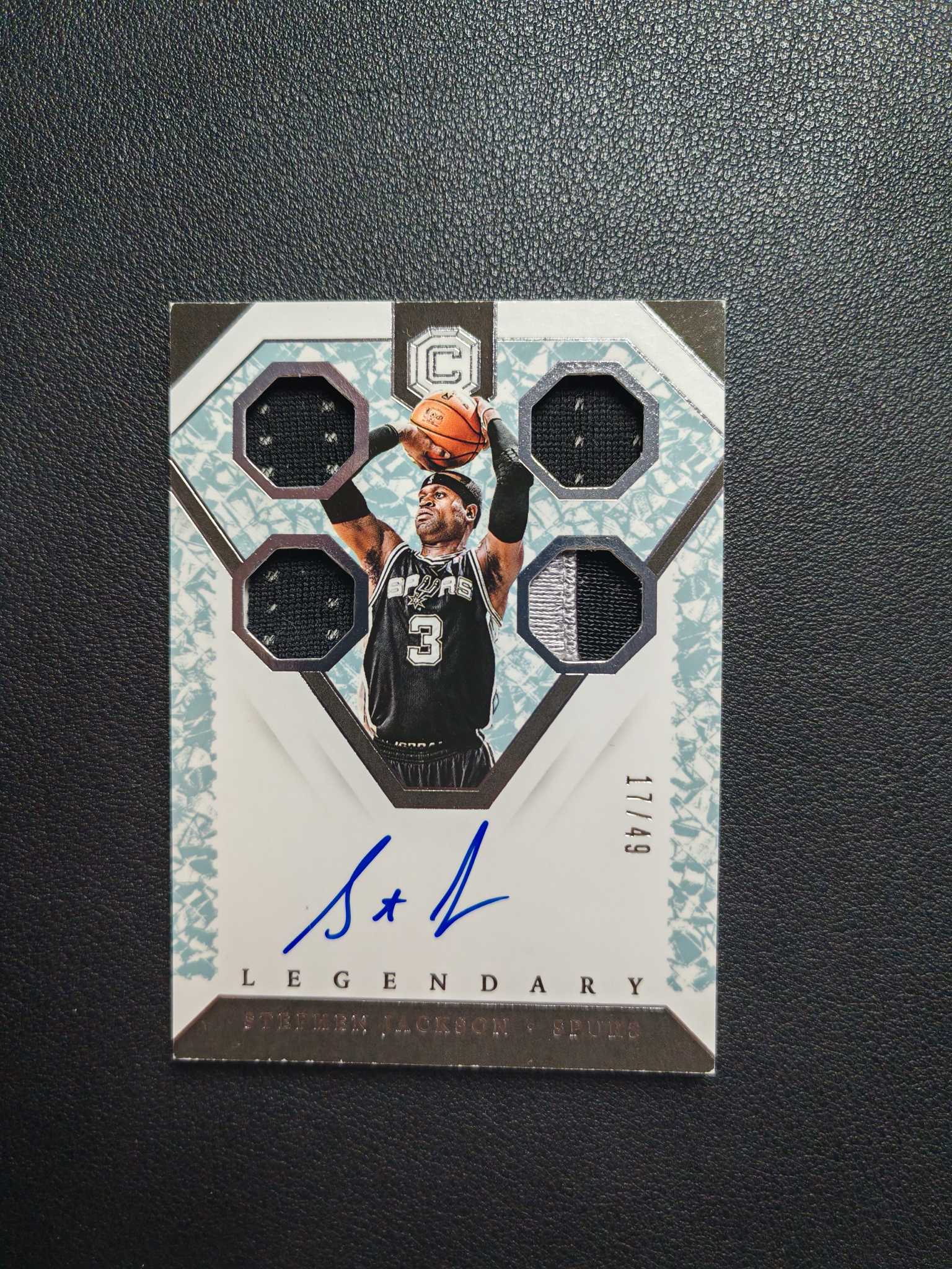 2018-19 Panini Cornerstones Stephen Jackson 《招财猫拍卖》马刺 名宿 斯蒂芬 杰克逊 PA 签字 卡签 patch 球衣 大理石 49编 微瑕【CXR】