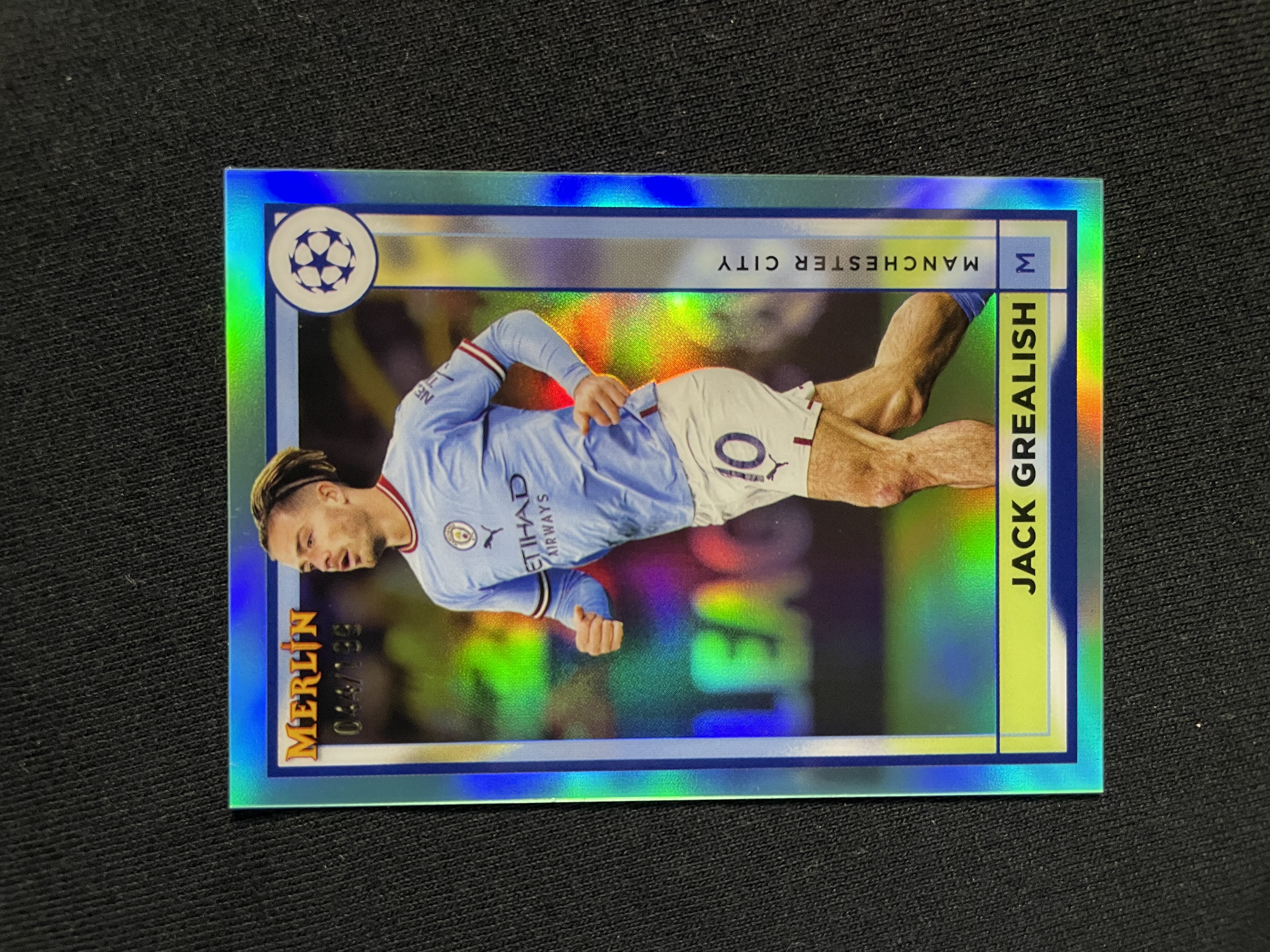 2023 Topps Merlin chrome Jack Grealish 【苦茶子拍卖】杰克 格拉利什 格里利什 欧冠 梅林 199编 青折 绿折 摇子 格10 曼城 维拉 英格兰 卡品如图