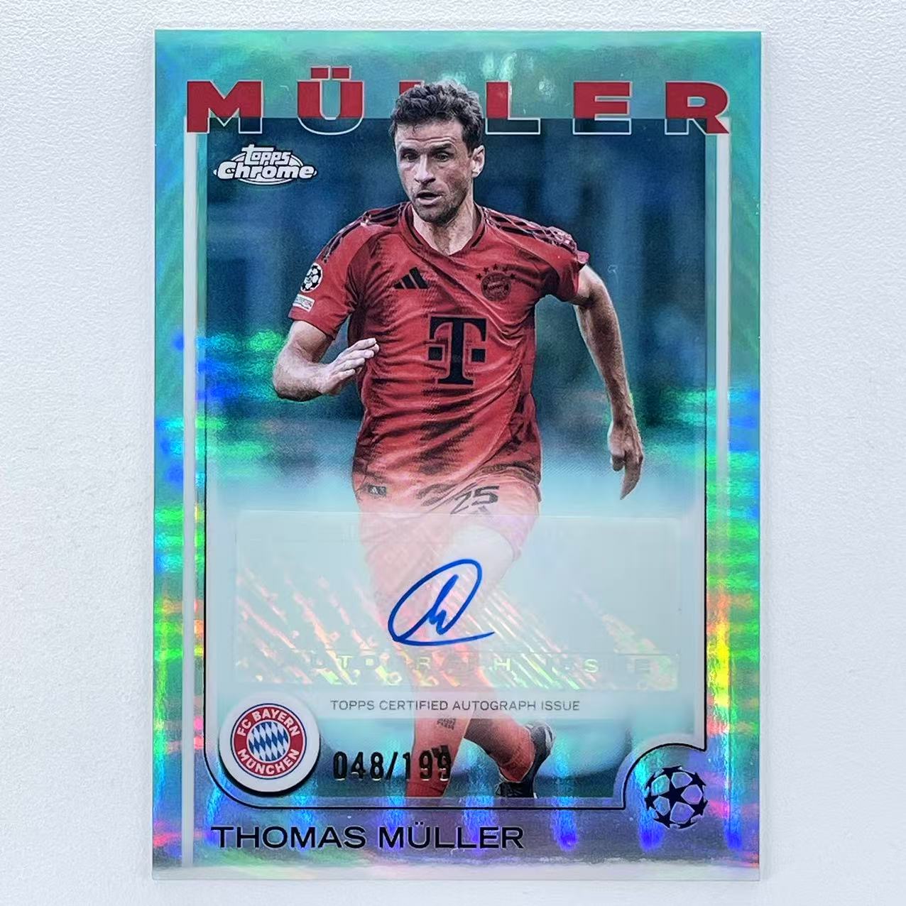 Y 2024-25 Topps Chrome Thomas Muller 托马斯 穆勒 拜仁慕尼黑 德国 二娃 欧冠 TC 199编 签字 签名 青折 折射 轻印如图 众孚DHE#