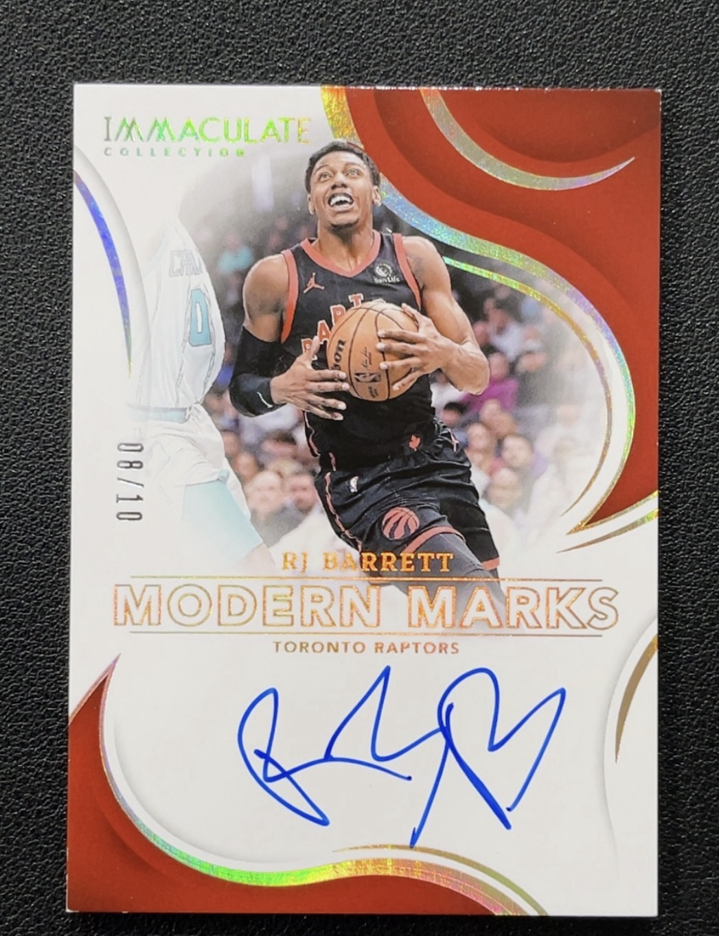 2023-24 Panini Immaculate R.J. Barrett RJ 巴雷特 Modern Marks 卡签签字 /10编 低编 金平行 瑕疵如图 猛龙 巴恩斯 队友