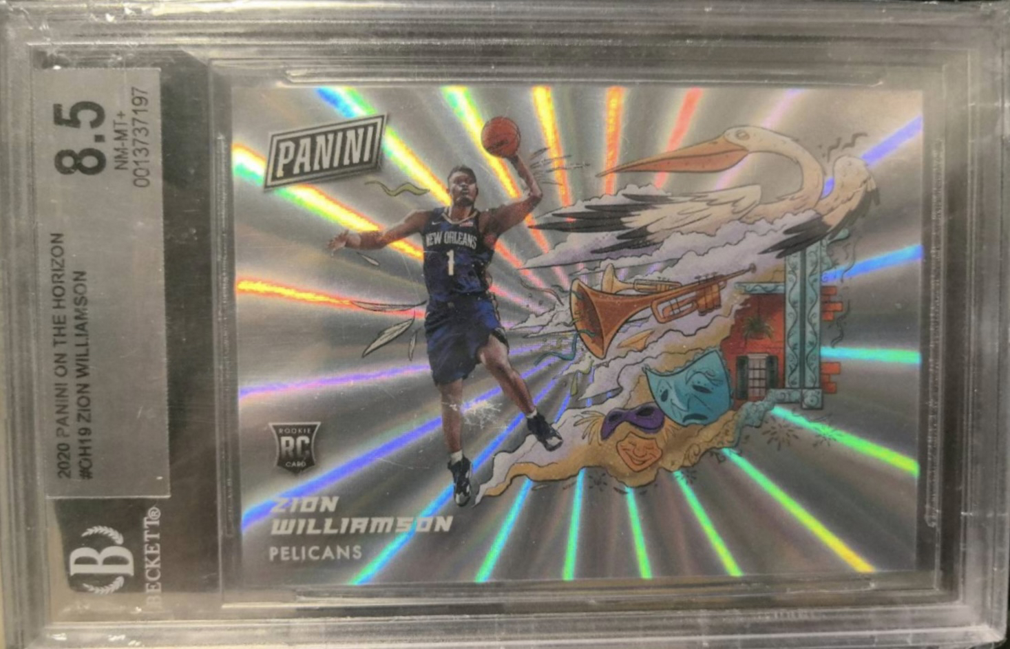 2020 Panini the national Zion Williamson RC 球员日 展会包 新秀 锡安 威廉姆斯 威廉森 佛光折 bgs8.5 评级卡 折射 地标 地平线特卡 大比例SP