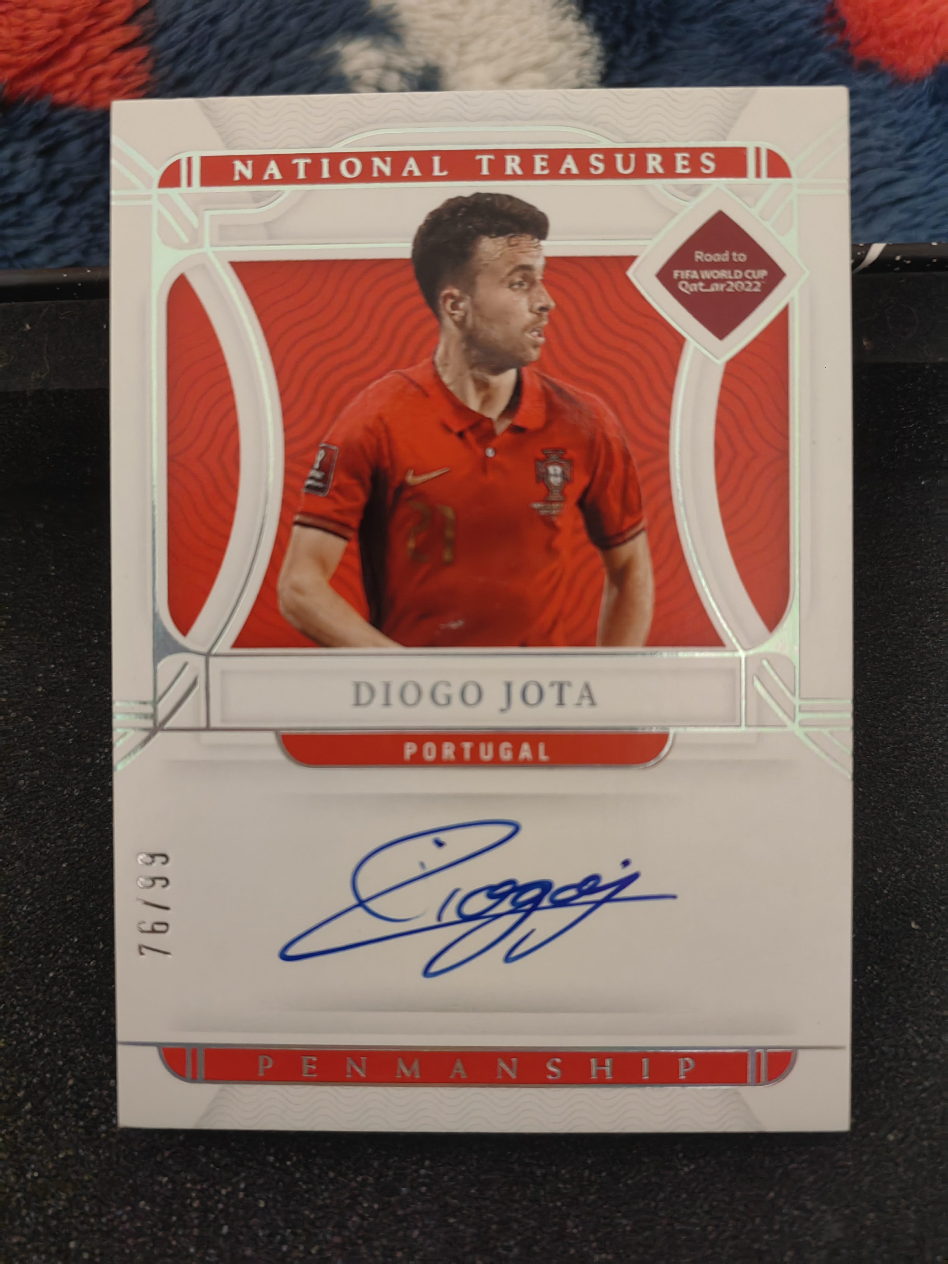 2022 Panini National Treasures Diogo Jota 若塔 卡签 世界杯 国宝 唯一一届世界杯 太遗憾了 99编 签字 亲笔签名且收且珍惜 利物浦 葡萄牙 深切哀悼