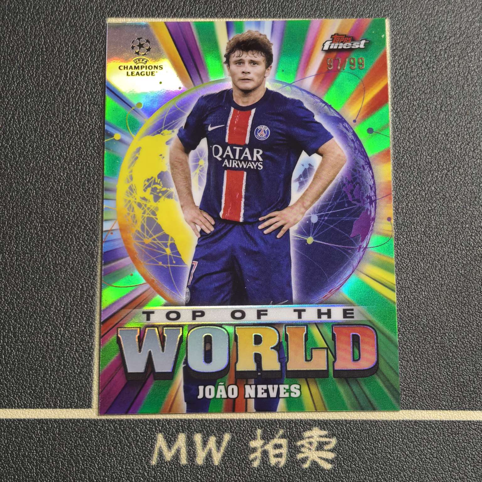 【MW拍卖上架预付8成】 若昂 内维斯 /99编 2024-25 Topps FINEST 绿折 欧冠 Top of the World世界之巅特卡 JOAO NEVES 葡萄牙 本菲卡 巴黎 PARIS -璐