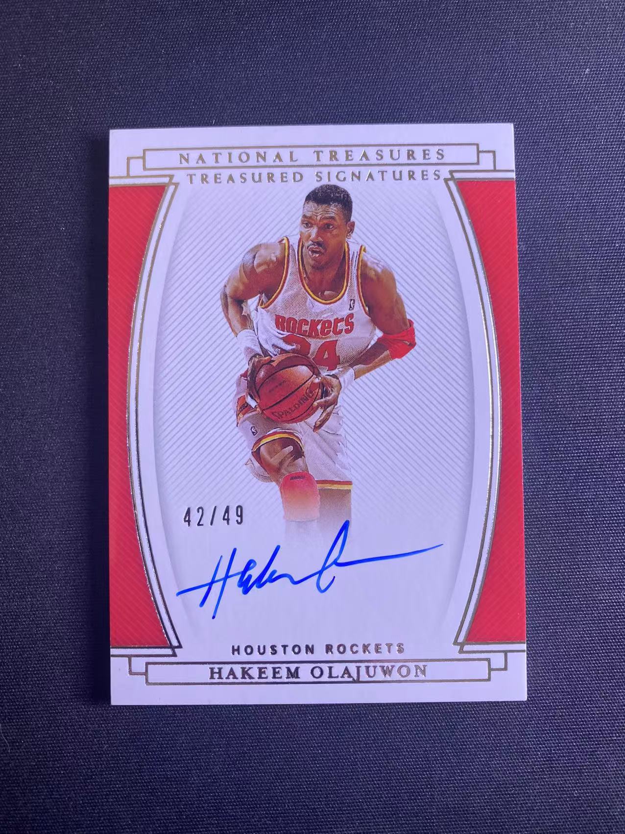 2020-21 【六六代卖 预付快速回款】 National Treasures Hakeem Olajuwon 奥拉朱旺 火箭 国宝 49编 卡签签字 瑕疵如图(老居)
