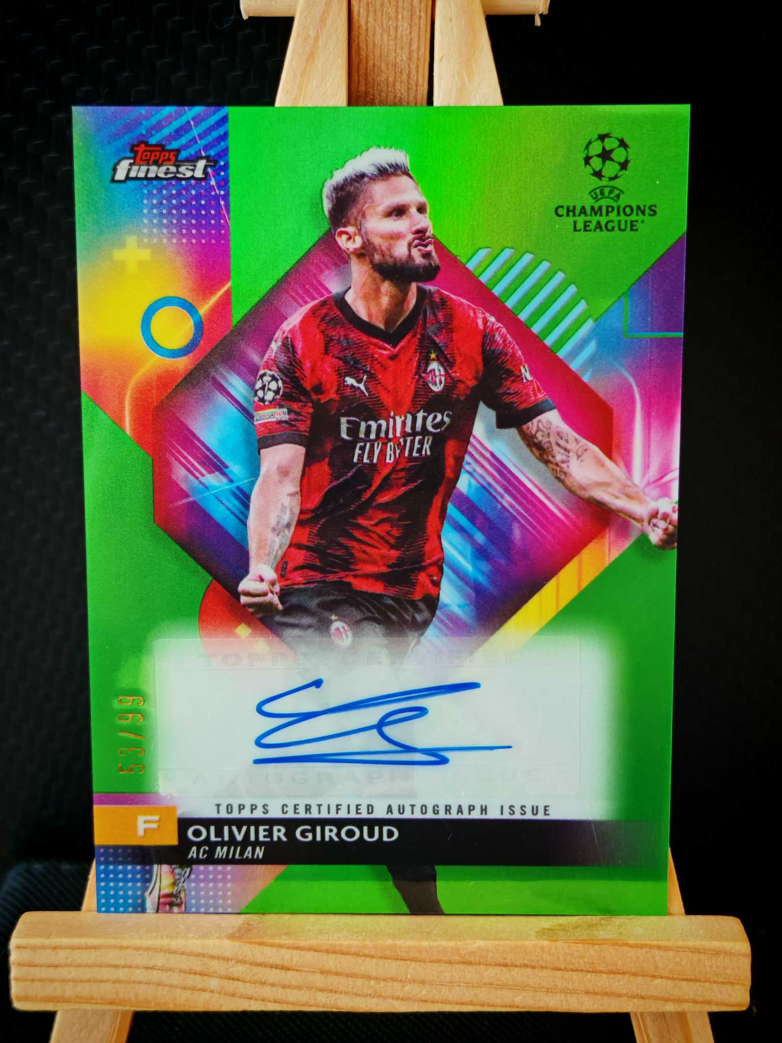 2024 Topps Finest Olivier Giroud 欧战 AC米兰 吉鲁 绿折 99编 签字 法国 切尔西 阿森纳 极具收藏价值 未来必涨