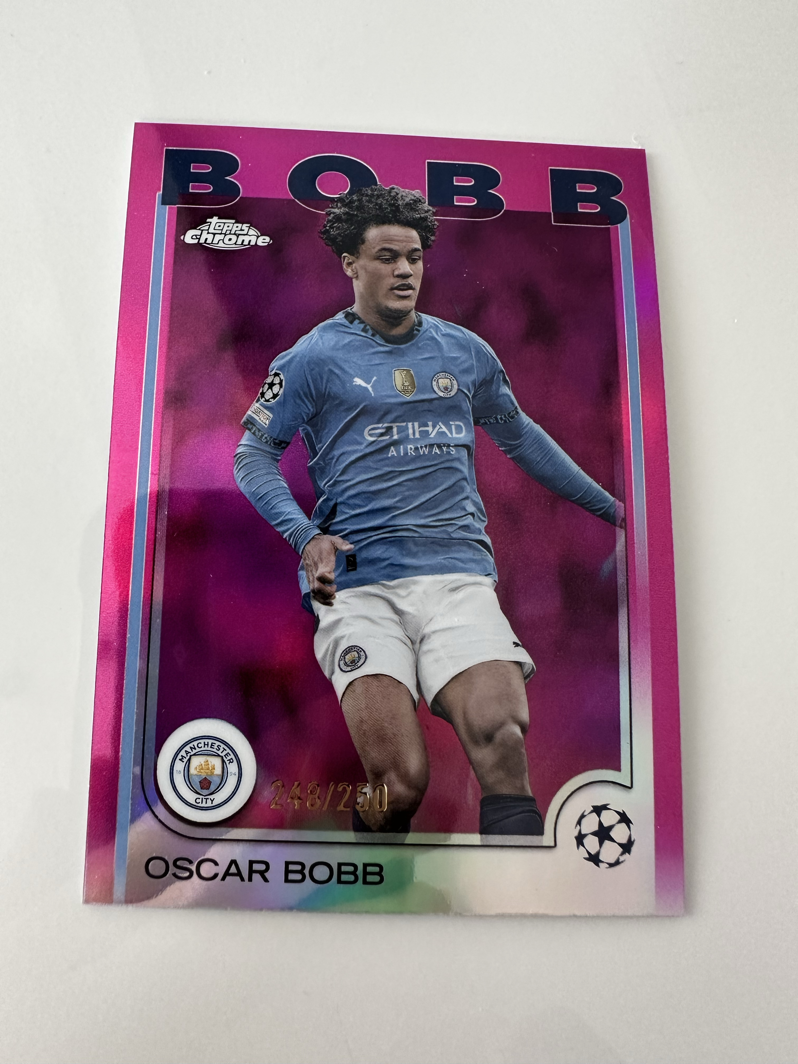 2025 Topps Chrome OSCAR BOBB 欧冠 欧战 TC 鲍勃 曼城 250编 哈兰德队友 粉折 折射 特卡【默认微瑕一日一快递 不累计 不发到付】大乐