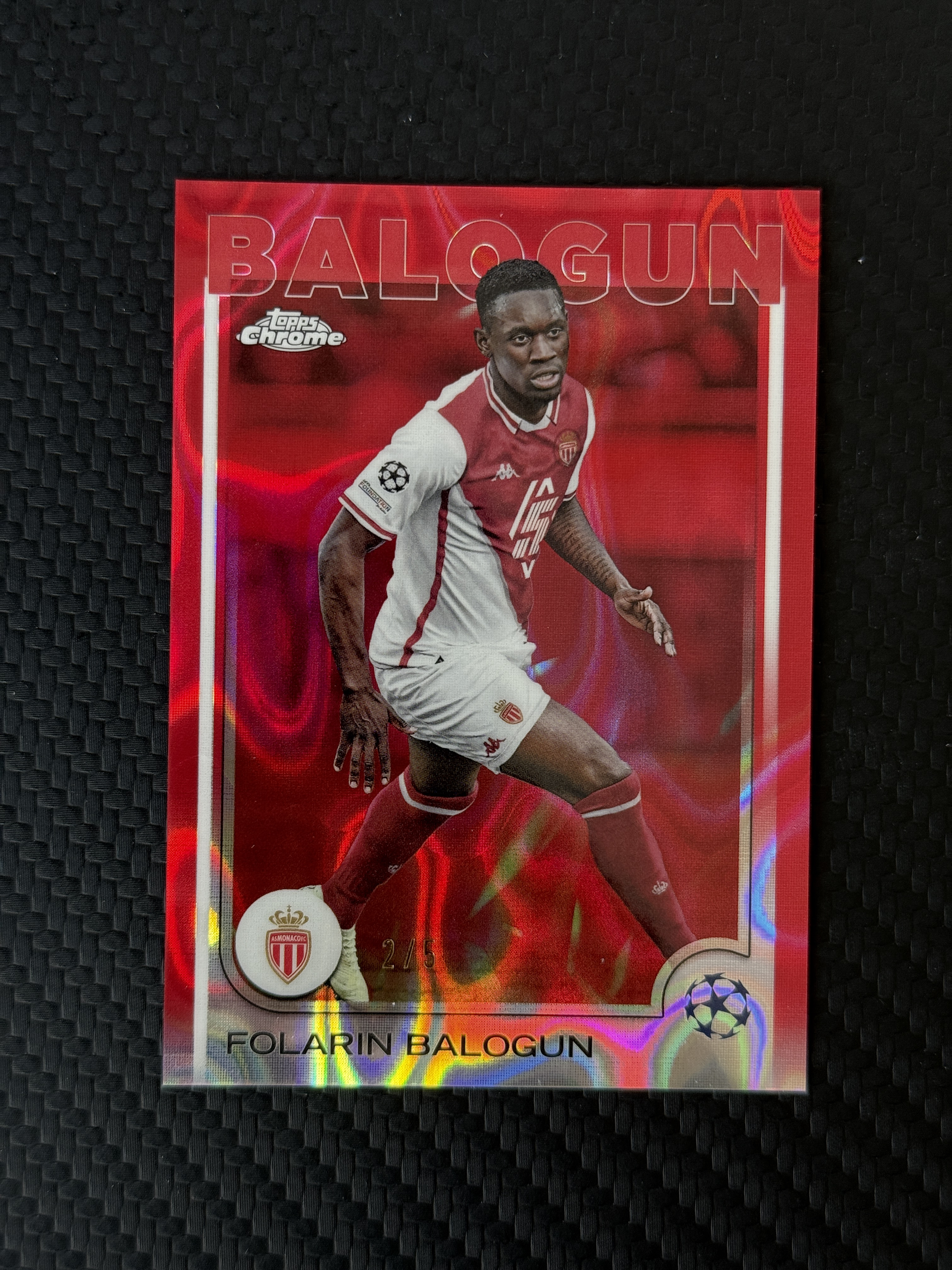 2024-25 Topps Chrome Folarin Balogun 【包来拍卖】欧冠TC 摩纳哥 超新星 前锋 巴洛贡 2/5编 红折 红熔岩折 超低编 color match 卡品如图 老虎