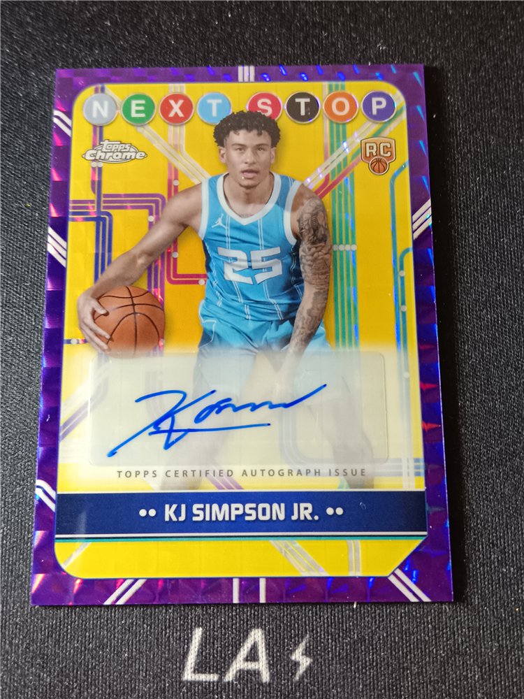 【LA拍卖】2024-25 Topps Chrome KJ Simpson Jr TC篮球系列 夏洛特黄蜂 小KJ 辛普森 RC新秀 签字 Next Stop 下一站 紫马赛克折 折射 潜力新秀 VKK081