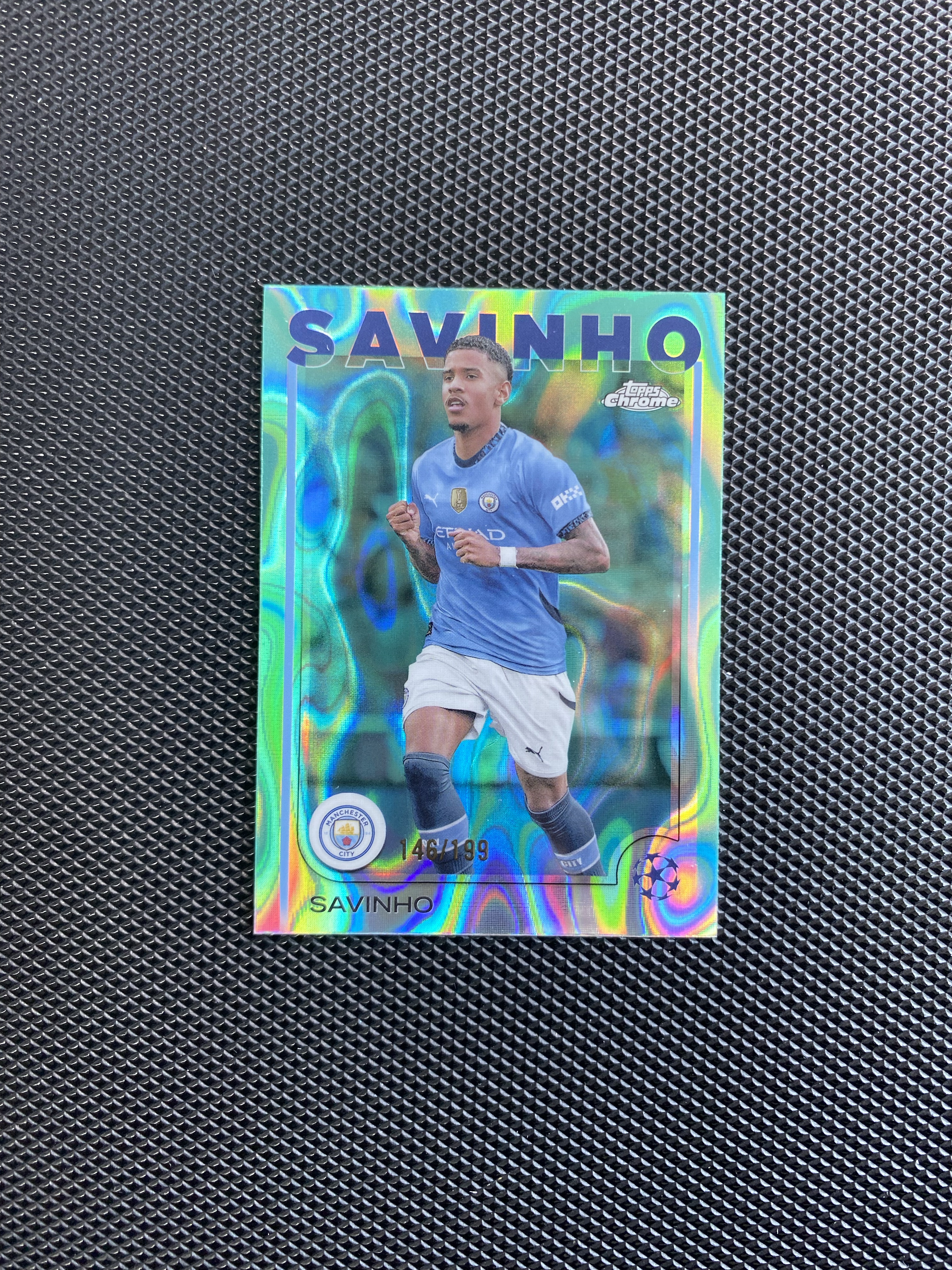 【绝杀拍卖-js377】2025 Topps Chrome 欧战 Savinho 曼城 萨维尼奥 199编 青熔岩折 卡品如图