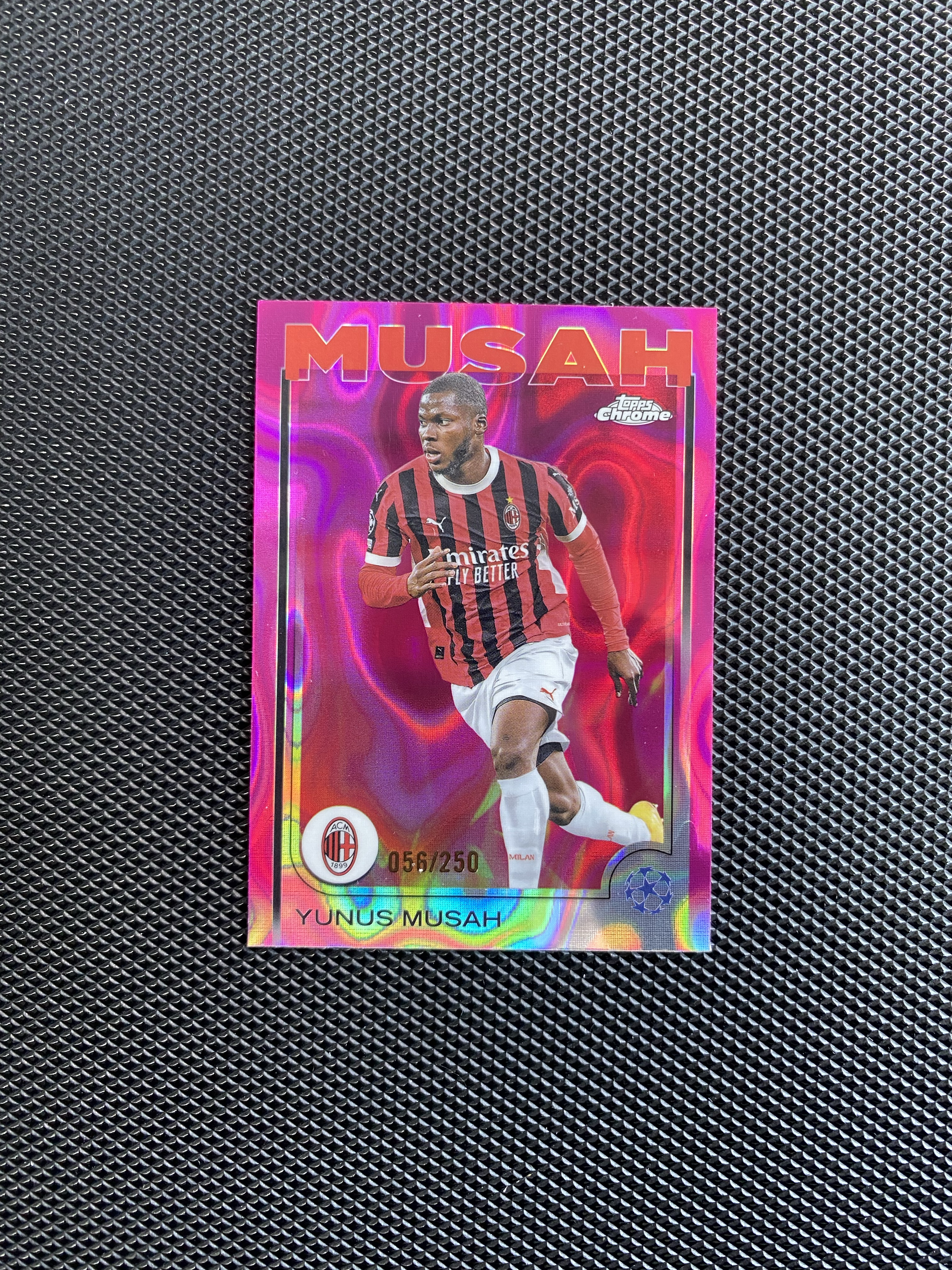 【绝杀拍卖-js377】2025 Topps Chrome 欧战 Yunus Musah AC米兰 尤努斯 穆萨 250编 粉熔岩折 卡品如图
