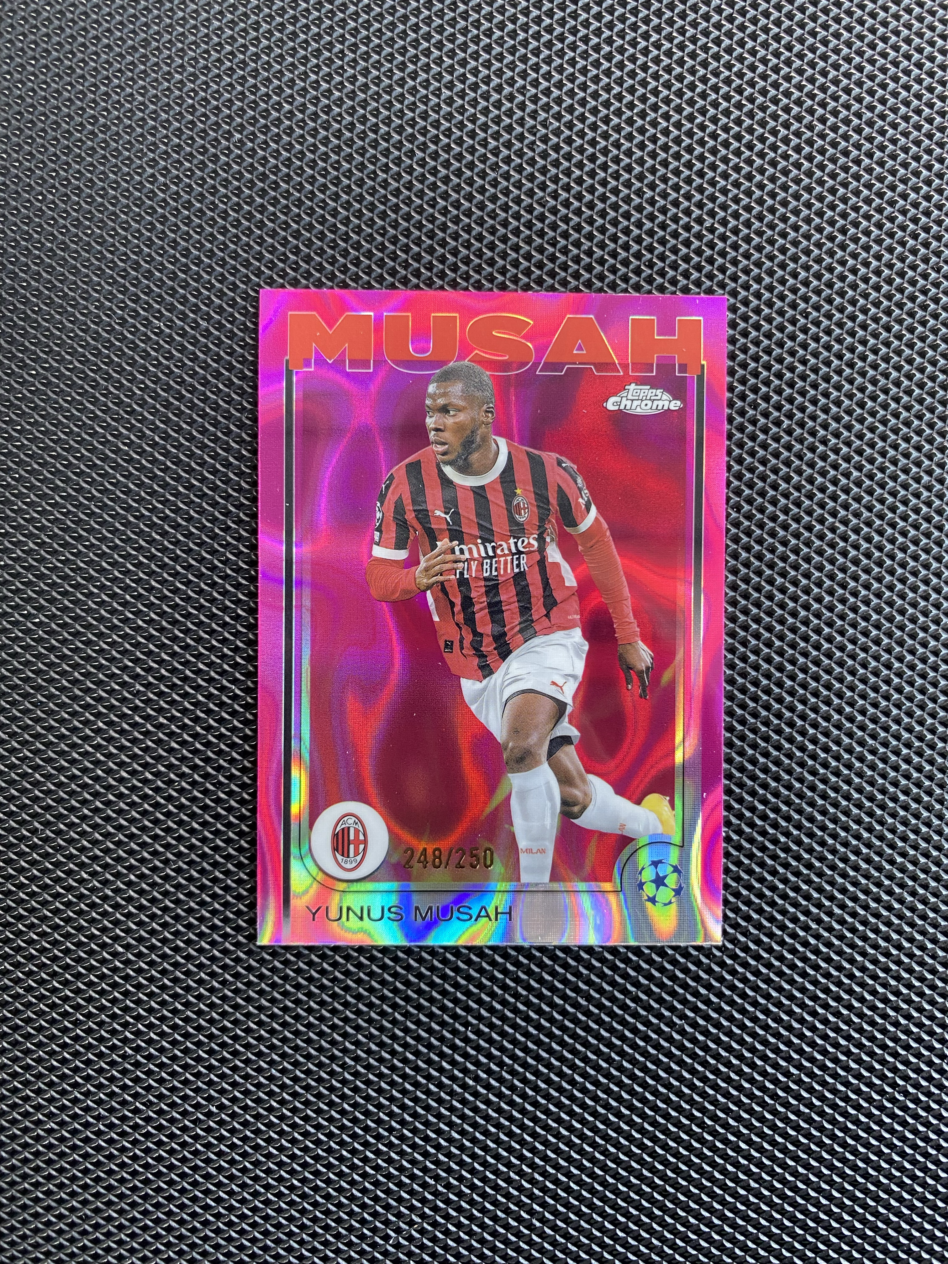 【绝杀拍卖-js377】2025 Topps Chrome 欧战 Yunus Musah AC米兰 尤努斯 穆萨 250编 粉熔岩折 卡品如图