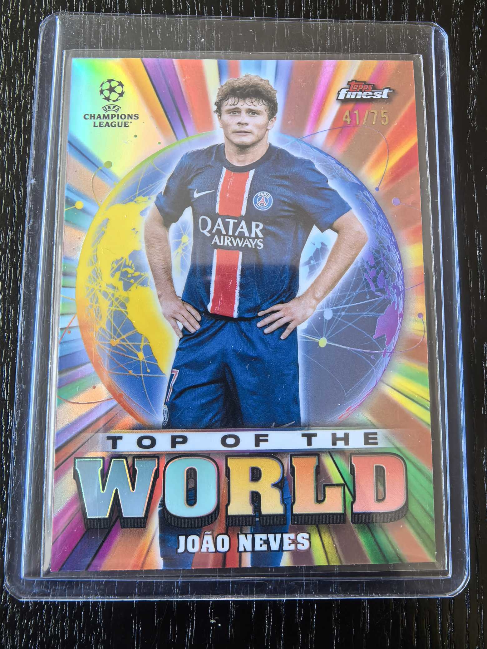 2024-25 Topps Finest Joao Neves 欧冠欧战 若昂 内维斯 巴黎圣日耳曼 top of the world 世界之巅 41/75编 橙折 收藏必备 卡品如图