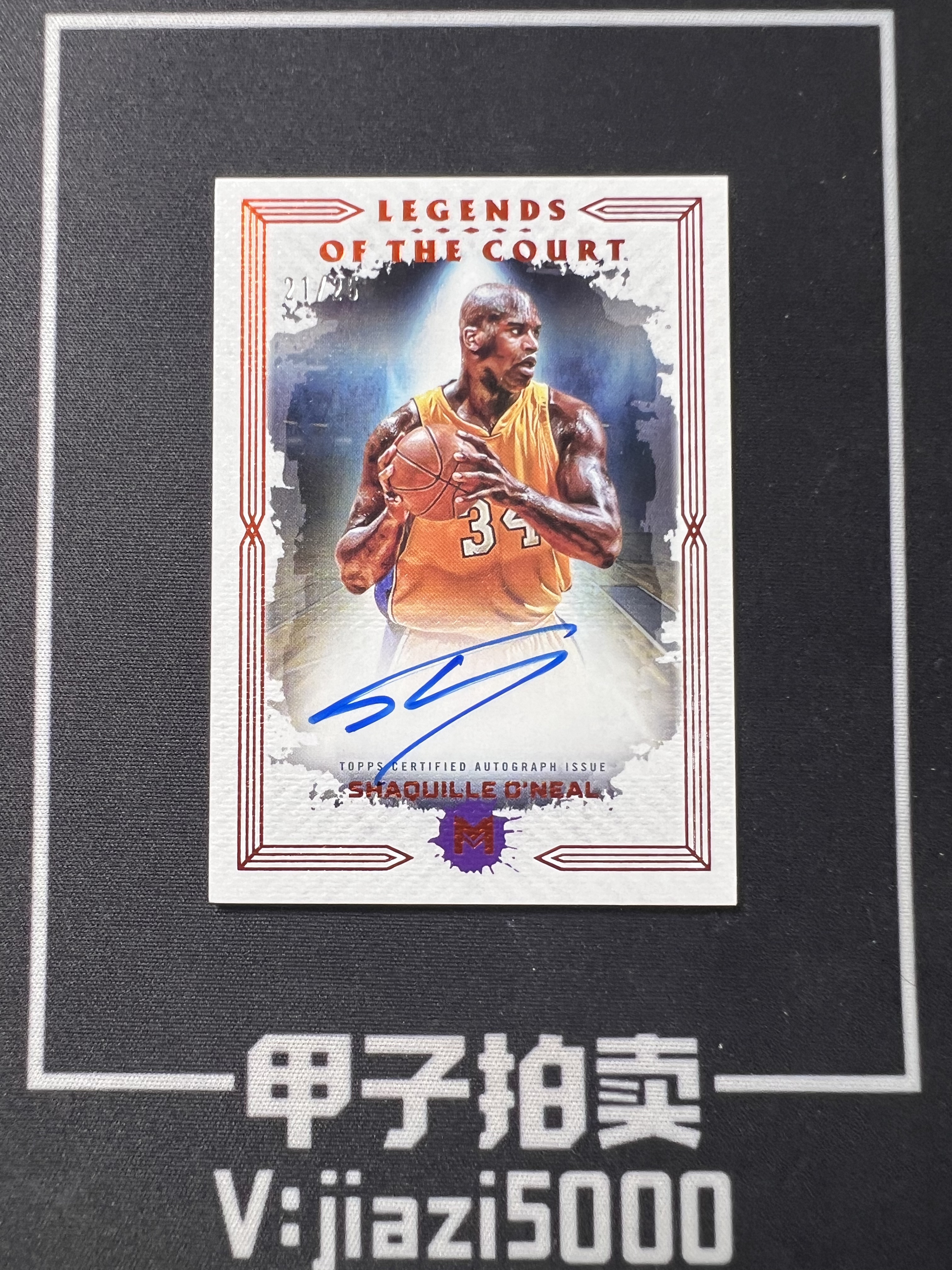 【甲子拍卖】 2024 Topps motif Shaquille O'Neal 湖人 沙奎尔奥尼尔 大鲨鱼 签字 卡签 橙平行 21/25编 尾编 微瑕看详情图 超74A