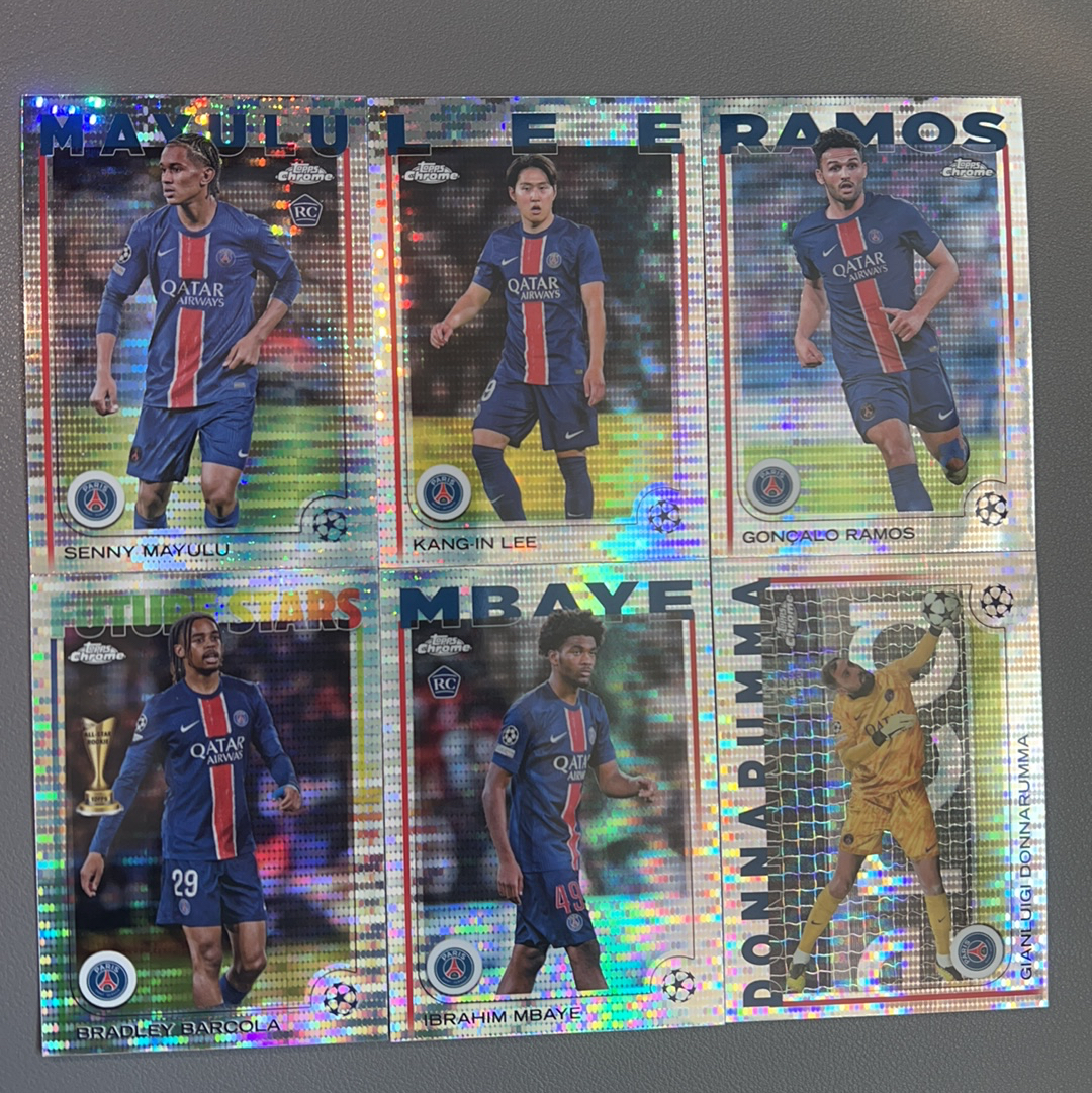 2024-25 Topps Chrome mayulu RC 2025 欧冠 TC 大巴黎 马尤卢 马尤鲁 姆巴耶 lee 李康仁 巴尔克拉 新秀 脉冲折 银折 折射 欧冠冠军 队套 6张lot打包
