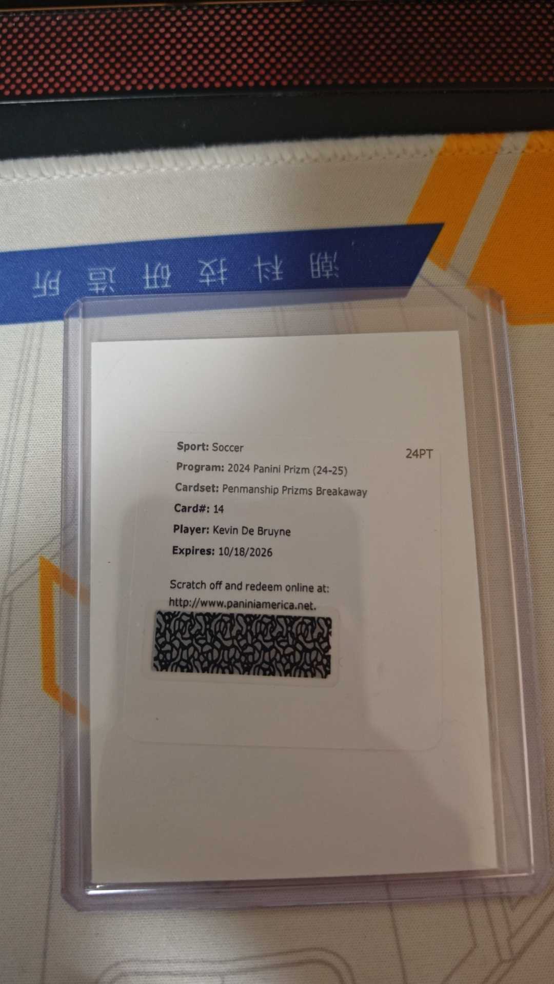 2024-25 Prizm 英超PZ Kevin De Bruyne 德布劳内 签字 交换板 银泡泡 曼城 Breakaway盒独占