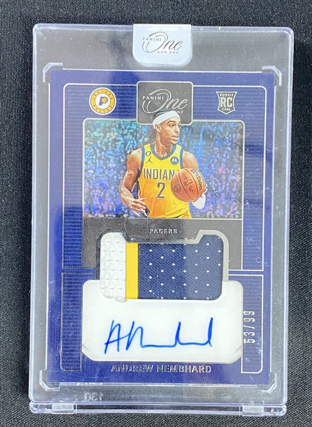 2022-23 Panini One and One Andrew Nembhard RC 步行者 安德鲁内姆布哈德 新秀RC /99编 RPA 球衣物料 卡签 暴力patch签字 原封砖