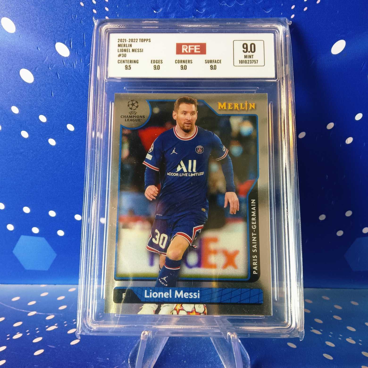 2021-22 Topps Merlin chrome 球王梅西 评级卡 大巴黎 实卡精美稀有 品质保障 投资收藏必备 生日礼物(卡品如图 请看清再拍)【蓝色星球】