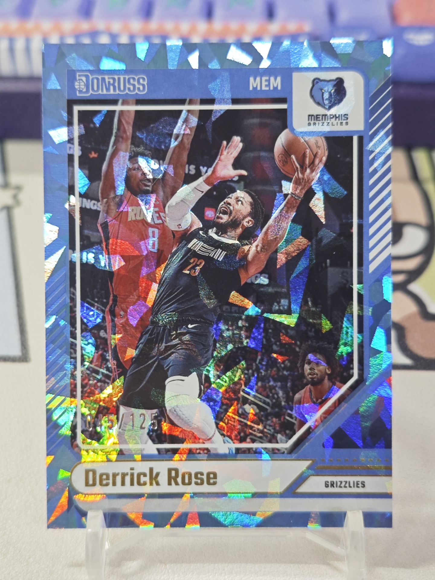 【浩行拍卖 截标预付82%】2024-25 panini Donruss derrick rose 杜蕾斯 灰熊 德里克 罗斯 蓝碎冰 折射 45/125编 专收必备「坛透」0705S03單