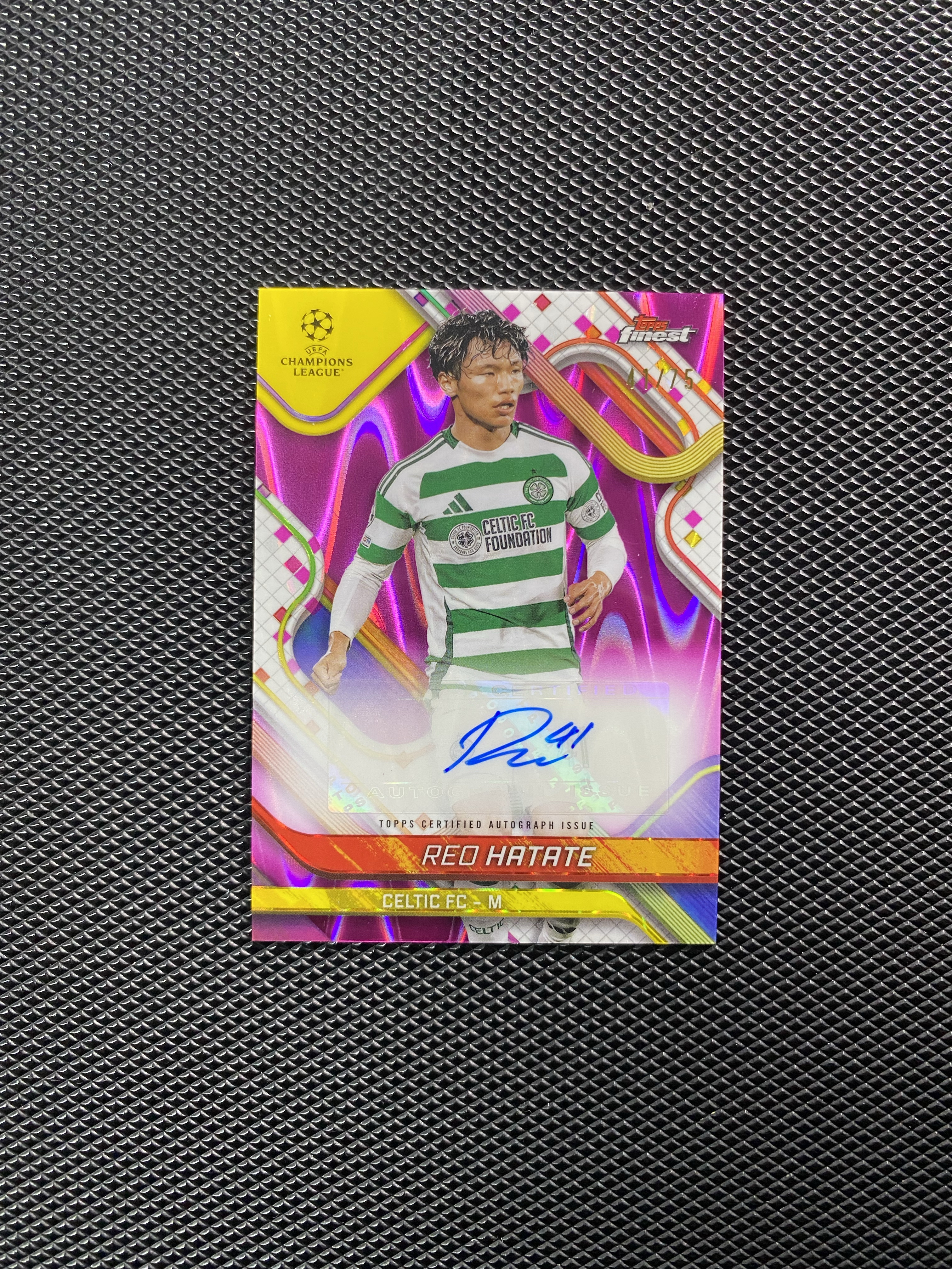【绝杀拍卖-js377】2025 Topps Finest 欧冠 Reo Hatate 凯尔特人 旗手怜央 75编 签字 粉波纹折 卡品如图