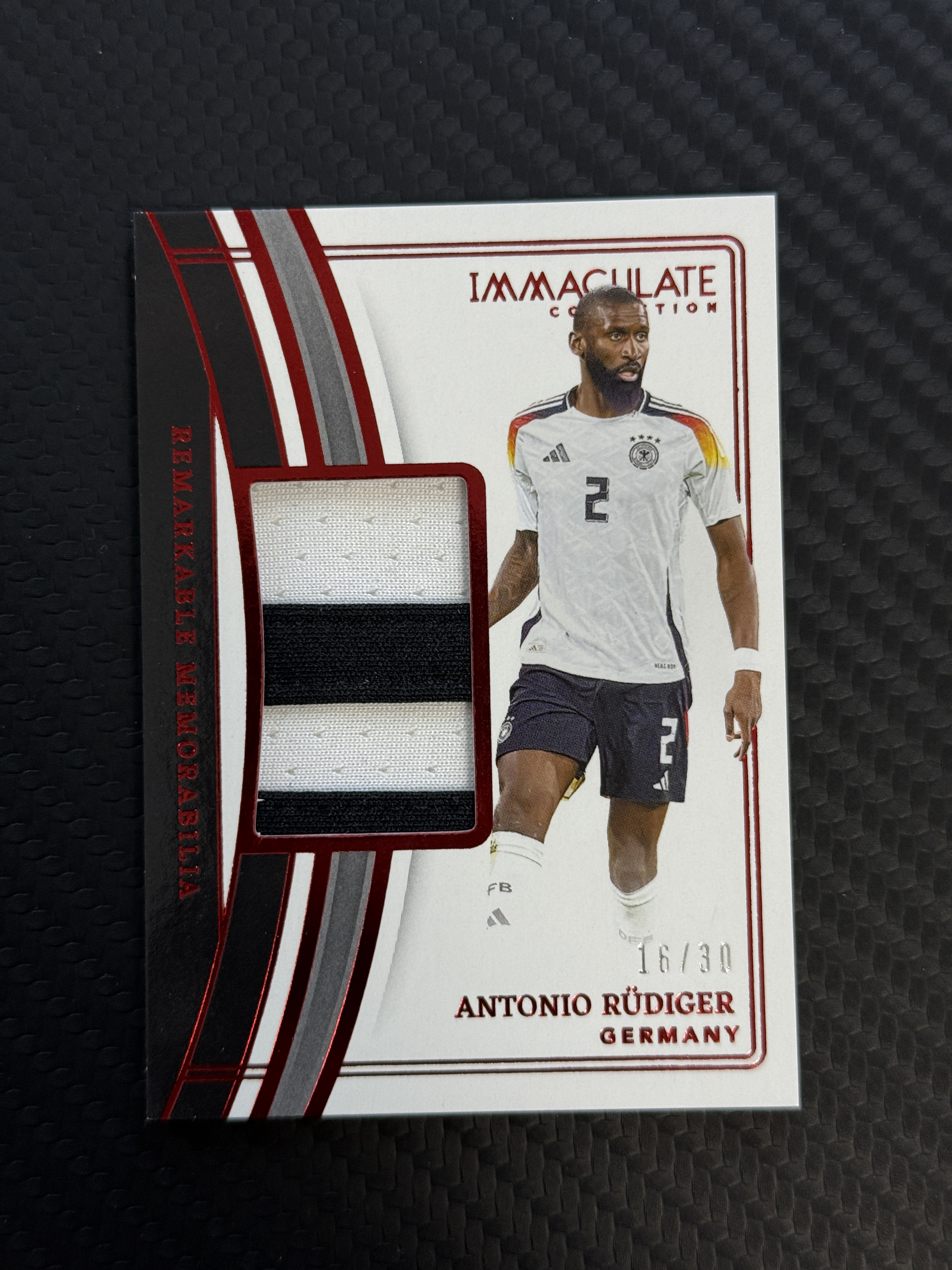 【包来拍卖】2023-24 Panini Immaculate 爱咪咪 Antonio Rudiger 吕迪格 16/30编 低编 物料 球衣切割 皇马 德国 卡品如图 sig