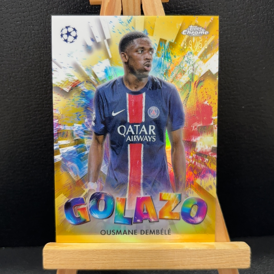 2025 Topps Chrome Ousmane Dembélé 登贝莱 蚊子 巴黎圣日尔曼 50编 欧冠 大巴黎 金折 Golazo特卡【鸥卡收卡】