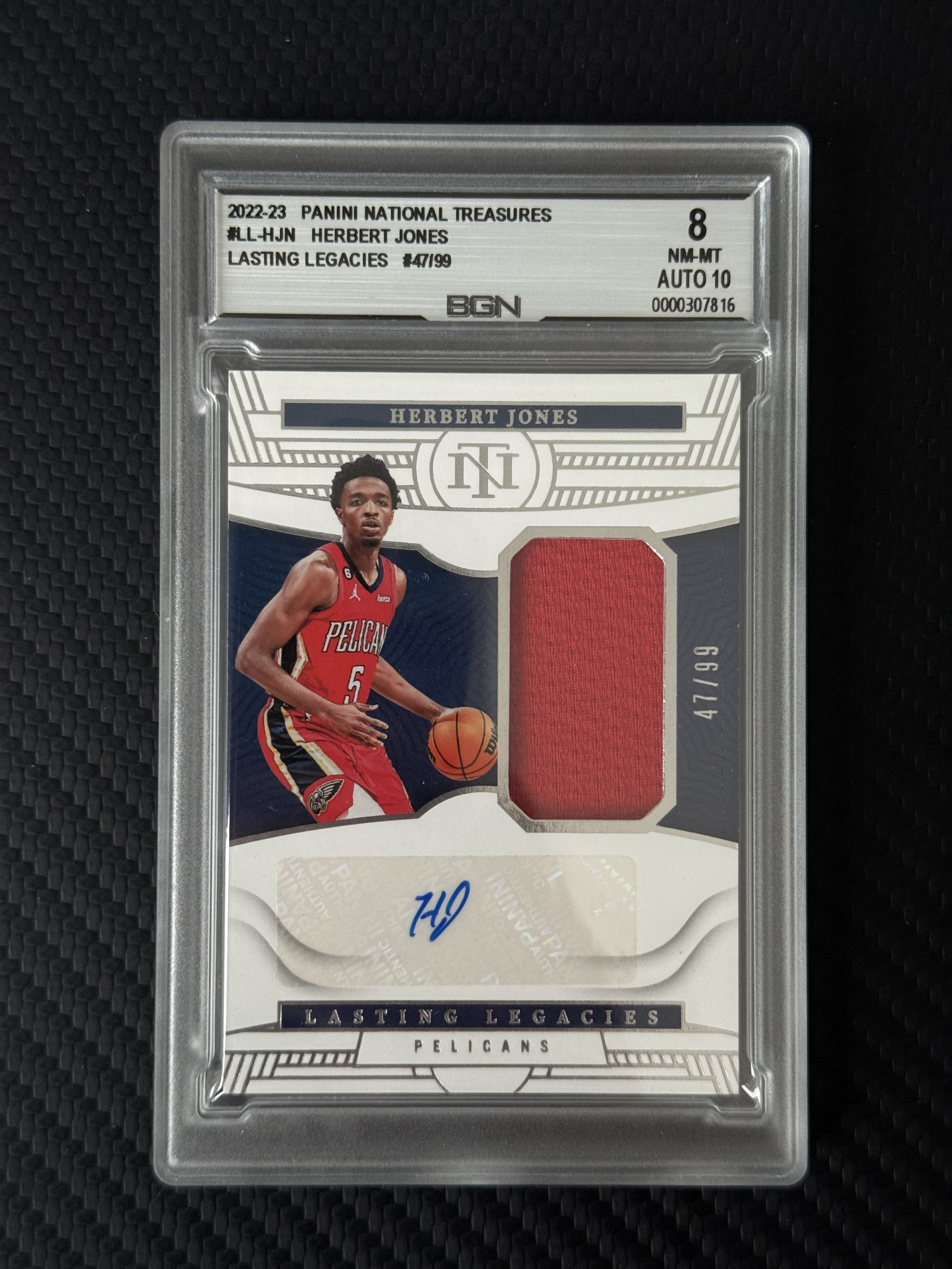2022-23 Panini National Treasures Herbert Jones 【包来拍卖】赫伯特 琼斯 国宝 99编 BGN评级 签字 亲穿 球衣 物料 鹈鹕 卡品如图 胡子哥