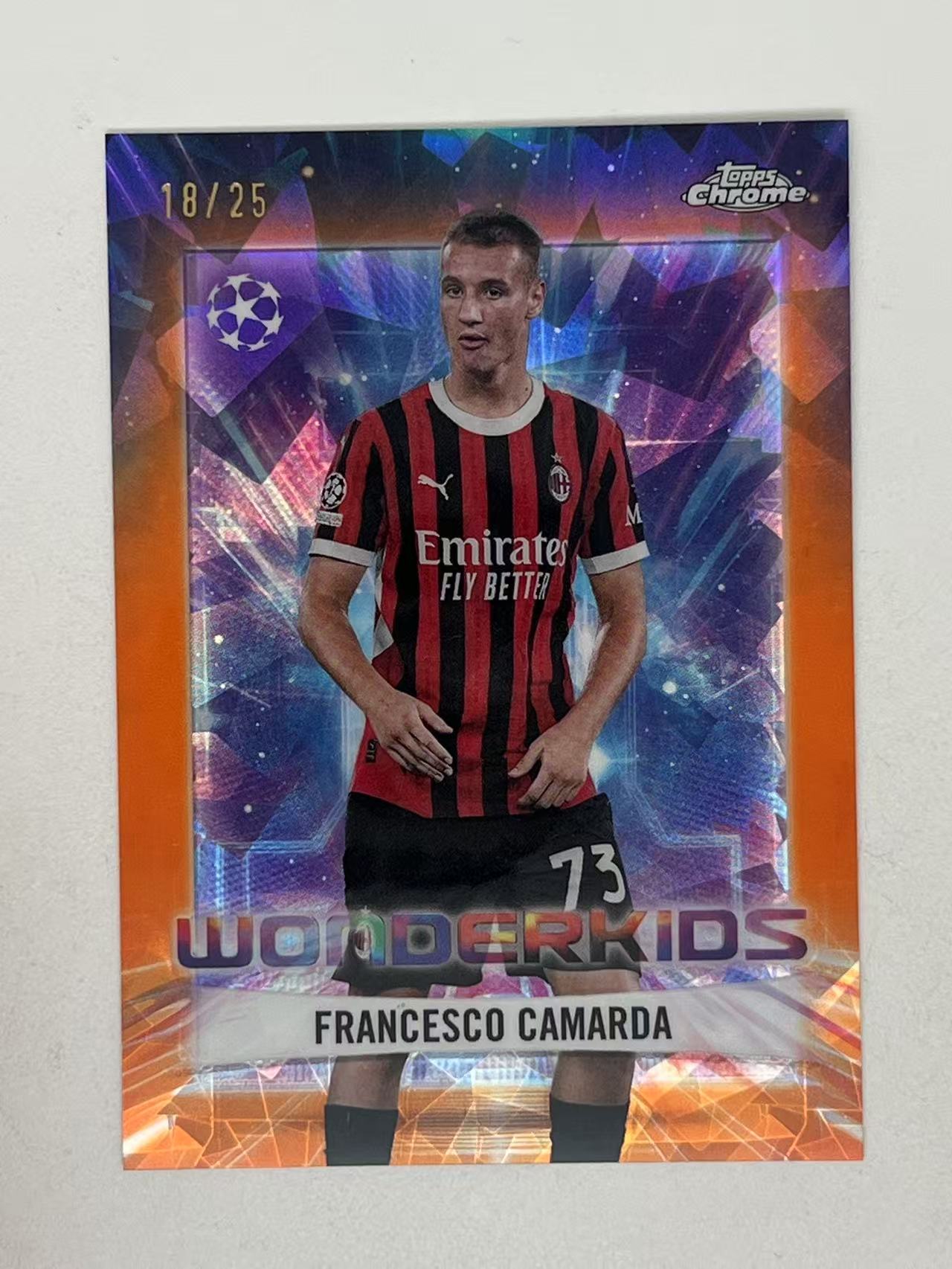 【宁动拍卖】2025 Topps Chrome Francesco Camarda 蓝宝石 欧冠TC AC米兰 弗朗西斯科 卡马尔达 18/25编 橙碎冰折 折射 神奇小妖特卡 #Jason