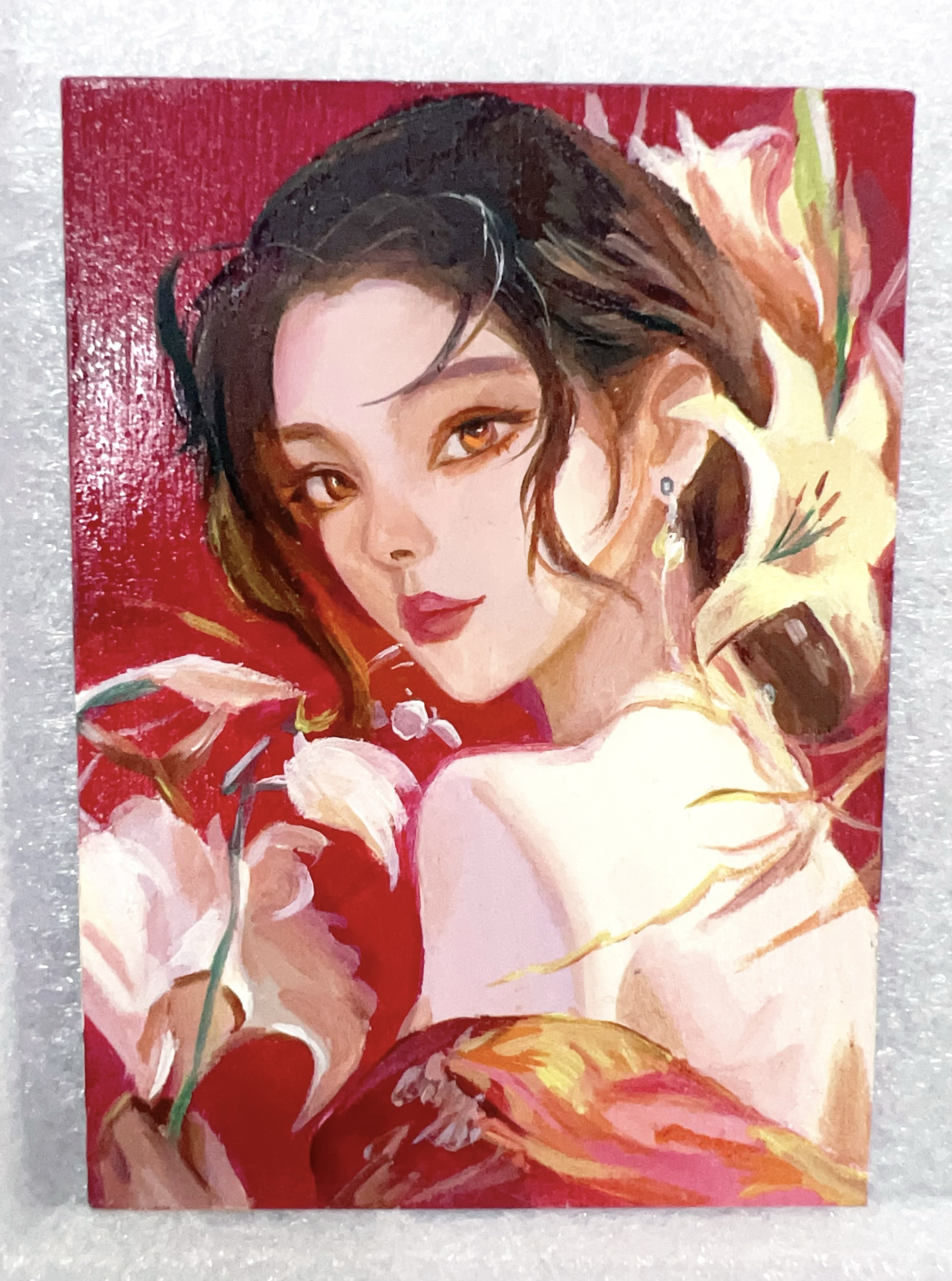 (精品手绘专场)全是HIt画师 Hit图鉴 花溪工作室系列手绘 这张是油画 画油画的老师不多 且拍且珍惜 古风美女 Hit 画师 岚却 亲笔签名 1of1 实卡精美 收藏凑套必备