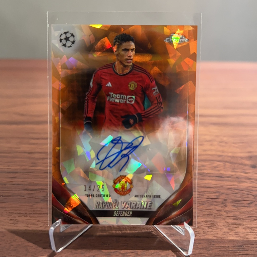 2023-24 Topps Chrome Raphael Varane 欧冠 蓝宝石 曼联 拉斐尔 瓦拉内 签字 /25编 橙碎冰 卡片如图 收藏凑套