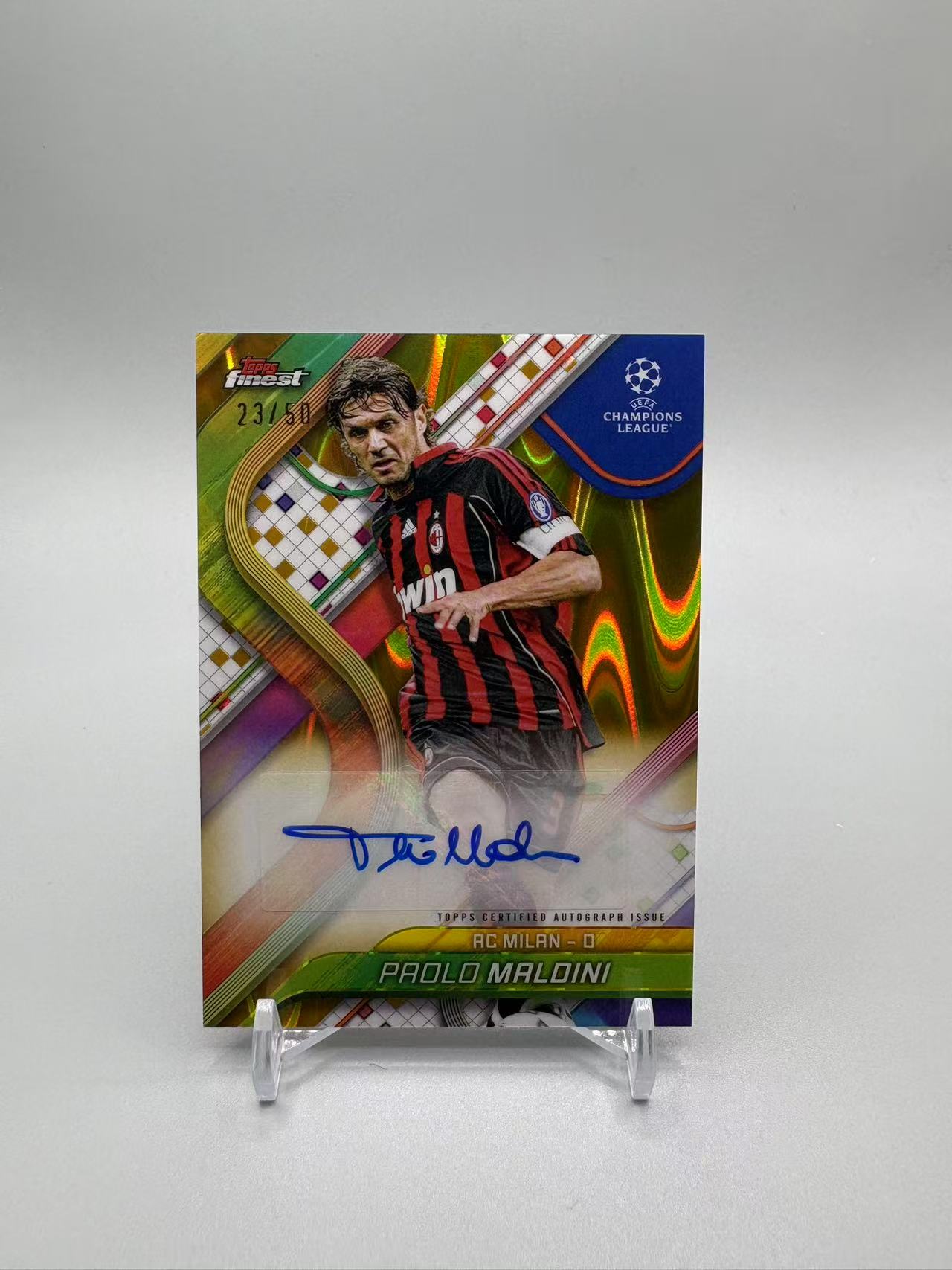 2024-25 Topps Finest Paolo Maldini 【灰灰代拍】全新欧战 finest系列 AC米兰 保罗 马尔蒂尼 签字 50编 金波纹折 威