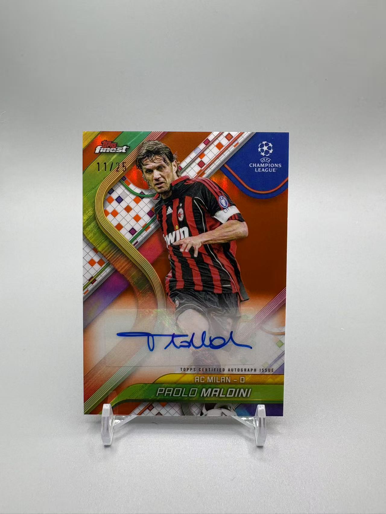 2024-25 Topps Finest Paolo Maldini 【灰灰代拍】全新欧战 finest系列 AC米兰 保罗 马尔蒂尼 签字 25编 橙折 低编 威
