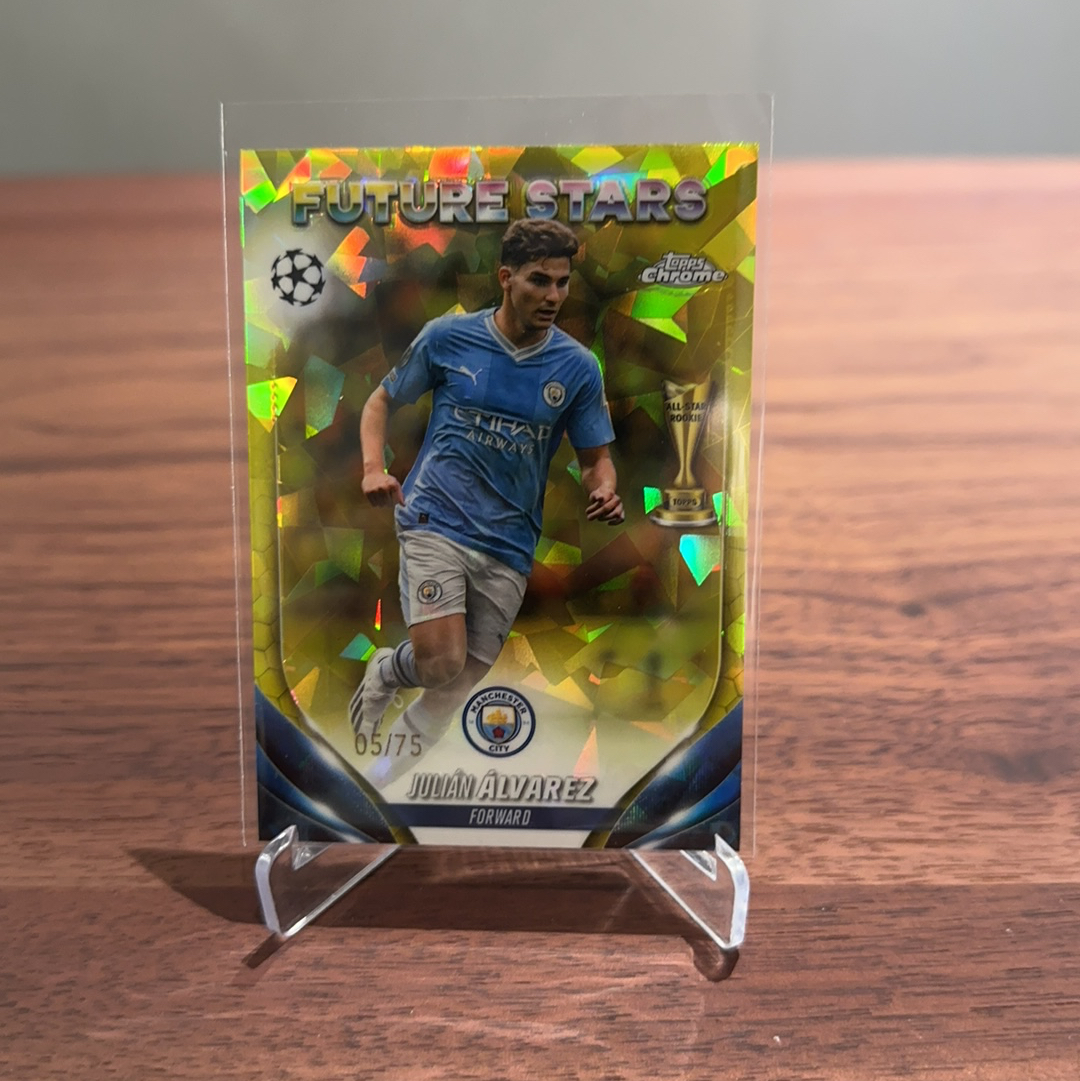 2023-24 Topps Chrome Julián Álvarez 欧冠 蓝宝石 曼城 阿尔瓦雷斯 /75编 黄碎冰 卡片如图 收藏凑套