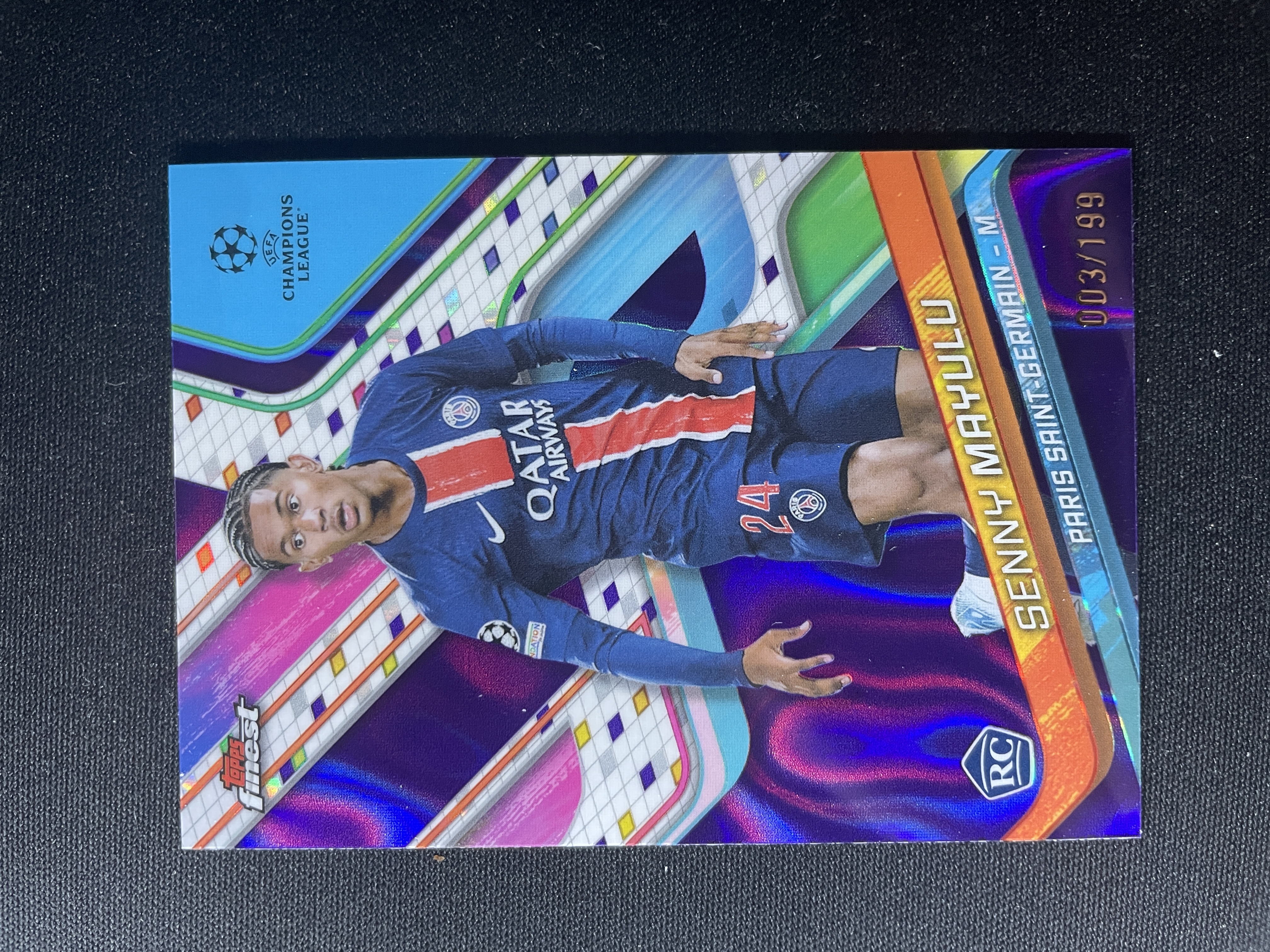 2024-25 Topps Finest Senny Mayulu RC 【禄卡】欧冠UCC 森尼马尤卢 新秀 199编 紫熔岩折 大巴黎 7.5-LZ-Z05