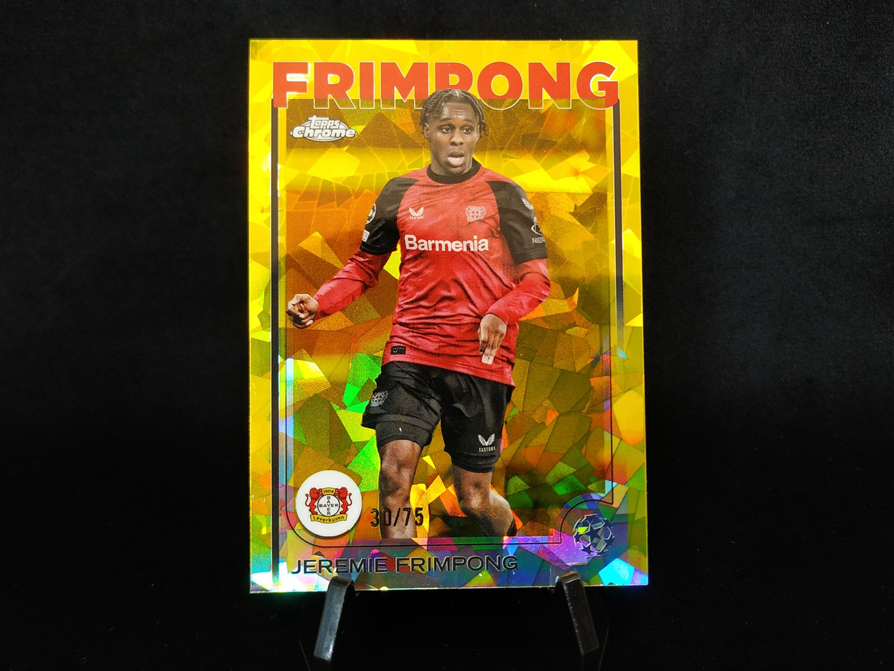 7-9【钢蛋儿拍卖】aiys 508 topps 2024-25 Chrome Sapphire UCC 欧冠 欧战 蓝宝石 勒沃库森 黄碎冰折 75编 杰雷米 弗林蓬 Jeremie Frimpong 卡品如图